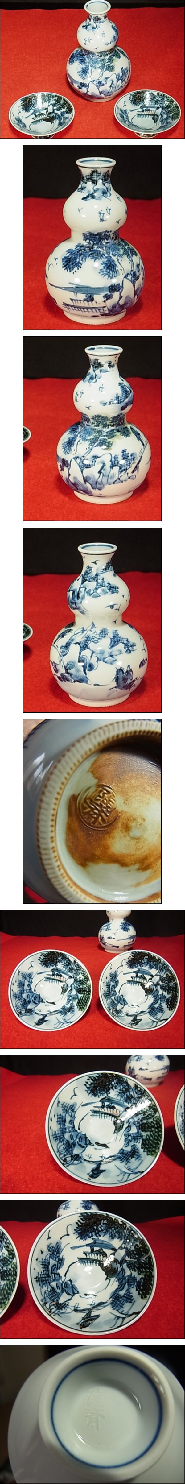染付色絵 平安 陶工こいし陶斎作 徳利1 高さ13㎝ 盃 口径7.5㎝2客 セット 美品良好品未使用保管品 收藏