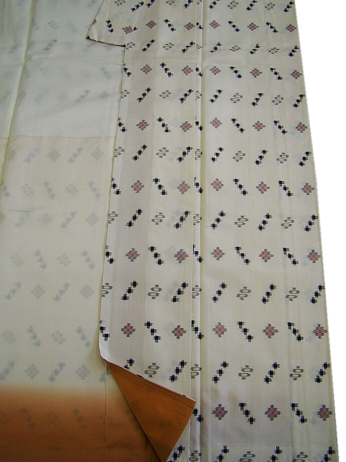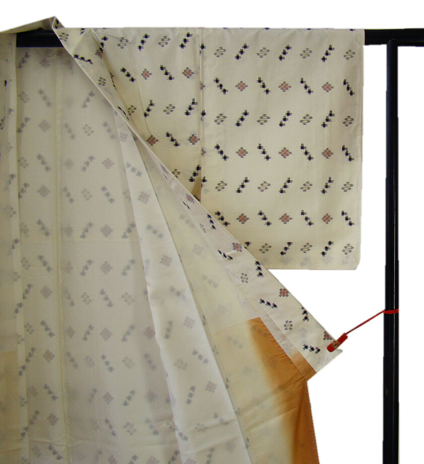| 商品説明 | こちらのお品は「袷」ですので10月から5月までお召頂ければと思います。 しなやかな紬は、着易く動きも軽く、着くずれしない腰の強さを併せ持った お洒落着としていつでもどこへでもお気軽にお愉しみ頂けご愛用頂けるお品です。 しなやかな手触りのシャリやハリ感ある肌触りも心地よい柔らかな紬地、 象牙色地に黒、赤、クリーム色等の織柄、 八掛は水柿色(正絹)、バチ衿仕立て、幅広い年代の方にお召頂けます。 |