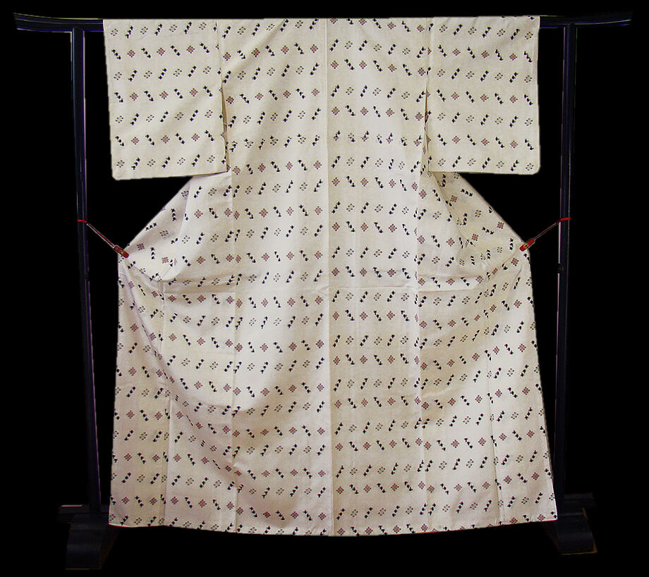きものしらゆり 身丈159cm 裄62cm 10~5月 S寸 バチ衿 白地系 絣柄 紬着尺 正絹 身長146cm~152cmの方に最適 B690 收藏