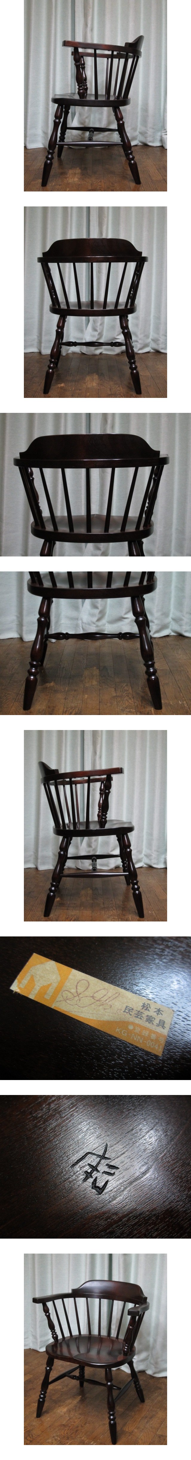 美品 松本民芸家具 ミズメザクラ 無垢材 #91型 キャプテンチェア 刻印有/椅子/アームチェア/ウインザーチェア/バーナードリーチ 收藏