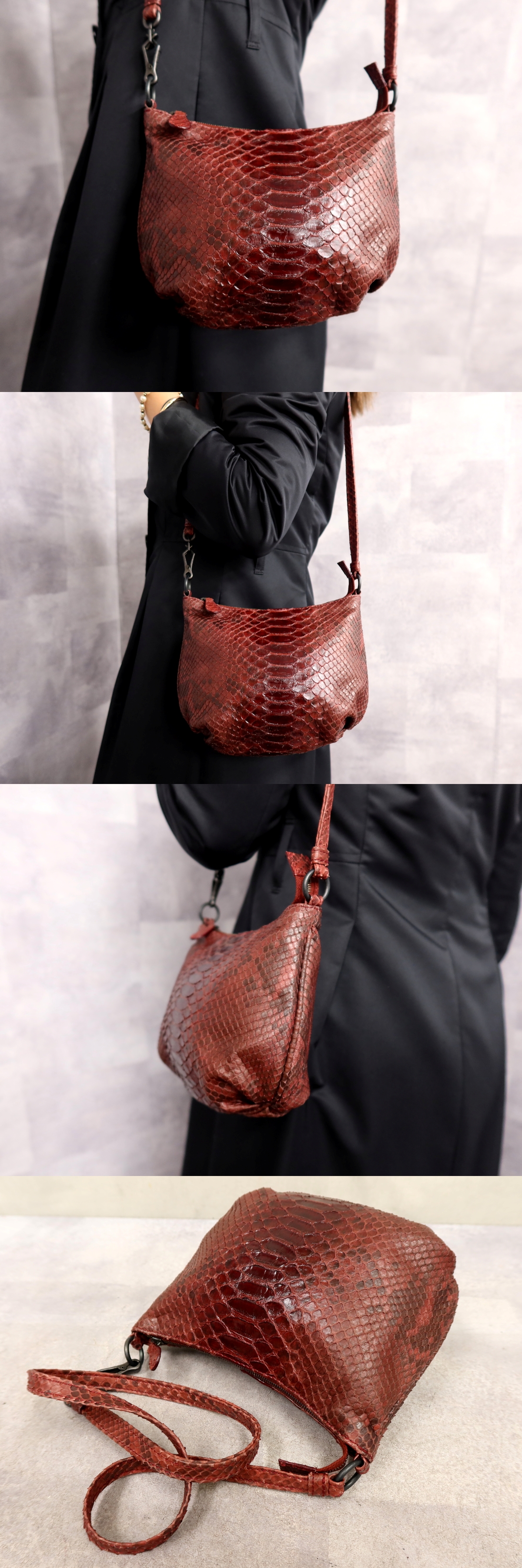 ●超美品●BOTTEGA VENETA ボッテガ ヴェネタ●パイソン 本 ヘビ 革●ショルダー バッグ●ダークレッド●斜め掛け●ヴィンテージ●Js62951 收藏