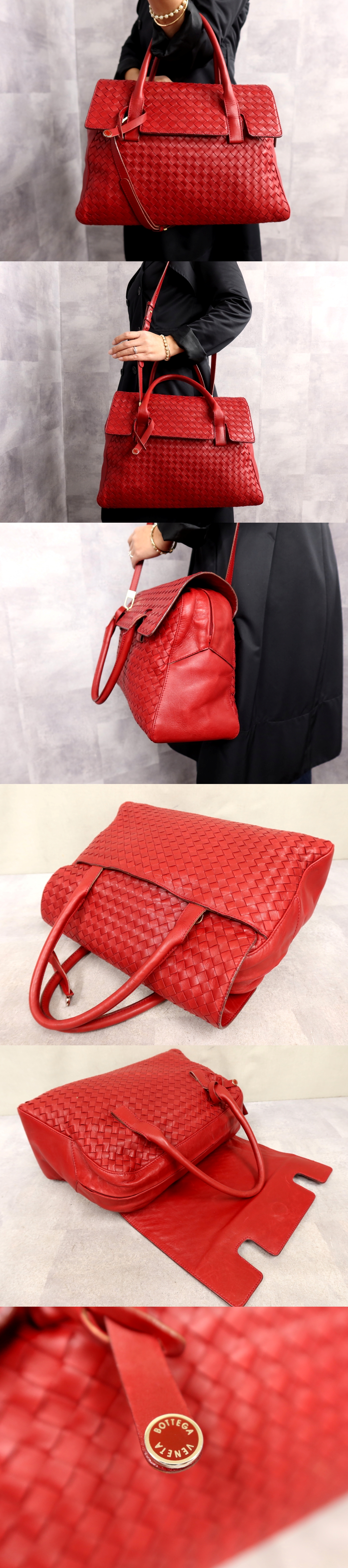 ●超美品●BOTTEGA VENETA ボッテガ ヴェネタ●イントレチャート●カーフ レザー 本革●2way ハンド バッグ●赤●G金具●B5 収納●Js62946 收藏