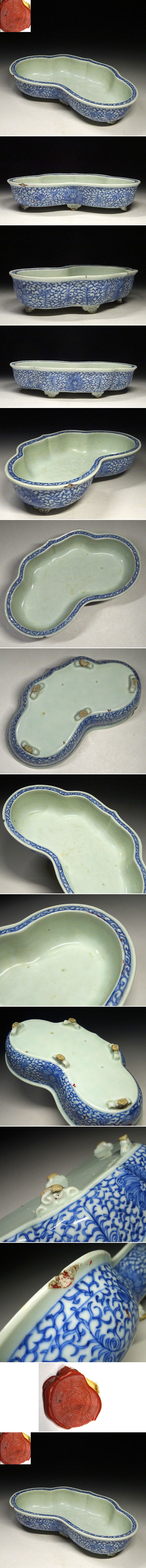 緑屋h■ 中国古玩 新渡 染付 水盤 唐物 時代物 i9/12-6155/29-4#80 收藏