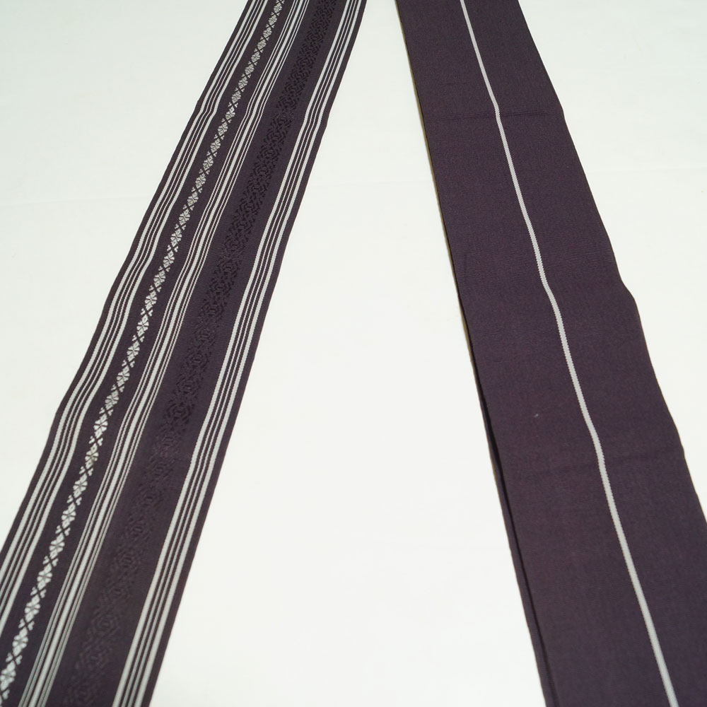 | 商品 説明 | 濃紺色系の地に亀甲模様が織られた紬着物と羽織のアンサンブル、深紫色系の地に献上縞模様が織られた博多織 角帯の3点セットです。羽裏は参勤交代模様です。羽織紐は付いておりません。 |