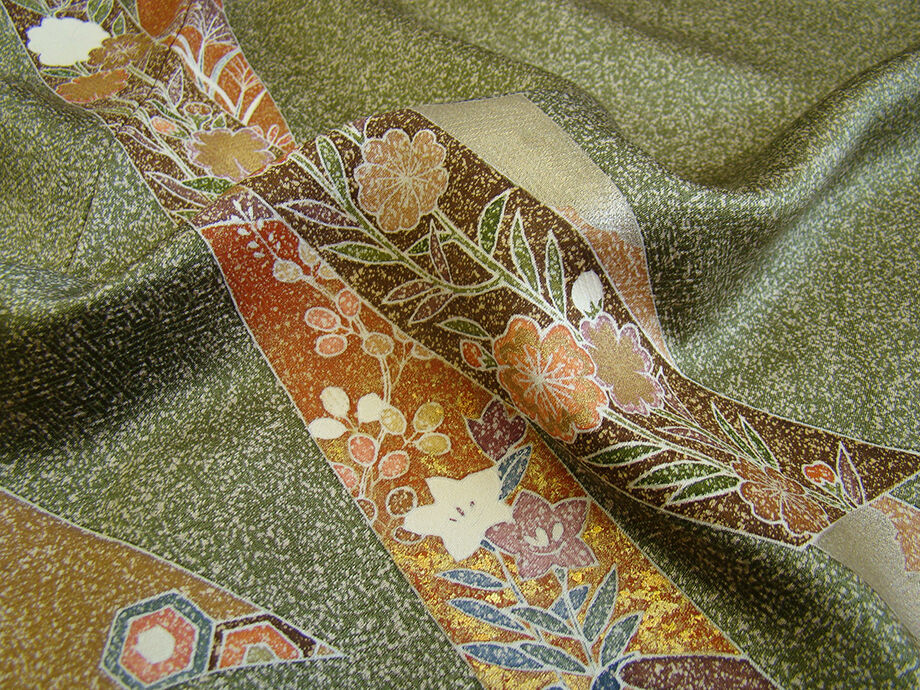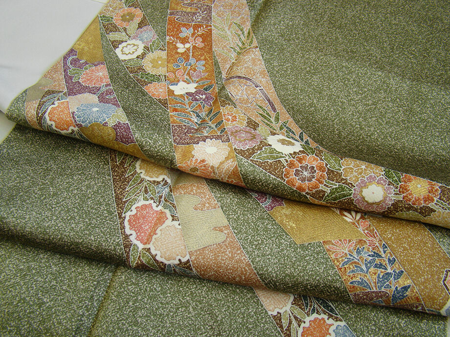 | 商品説明 | こちらのお品は「袷」ですので10月から5月までお召頂ければと思います。 とてもしなやかで柔らかな滑らかな手触りの着心地良い重めの紋意匠地の生地、 渋い璃寛茶色地に地模様入りにたたき染、花草柄の染柄に金彩加工仕立て、 気品に満ち溢れた彩りが正統派のお着物として一枚は欲しい逸品の素敵なお着物です。 八掛は薄紅色(正絹)、幅広い年代の方にお召頂けます。 |