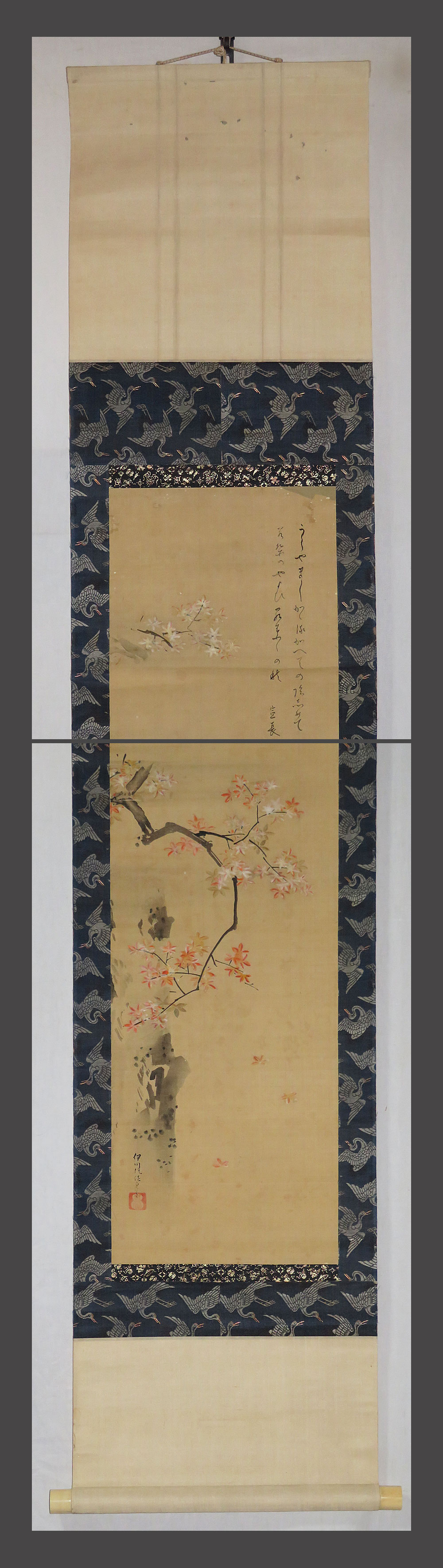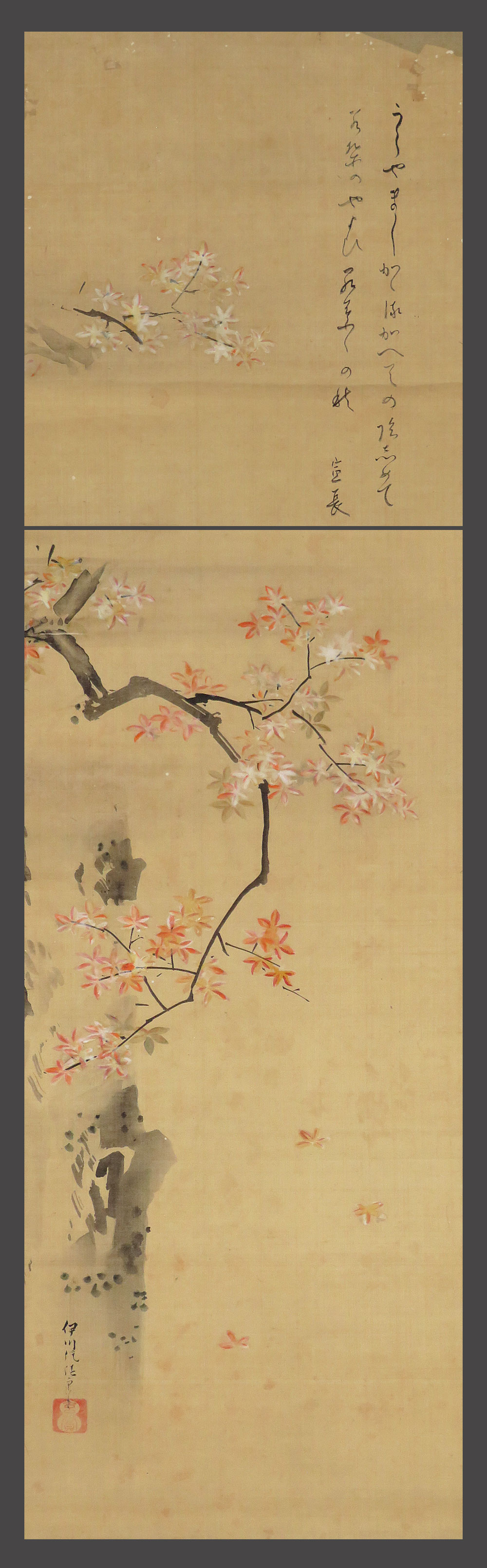 【adva】【真作】■狩野伊川院画■本居宣長賛■紅葉図画賛■古筆鑑定箱■肉筆■掛軸■掛け軸■日本画■ 收藏