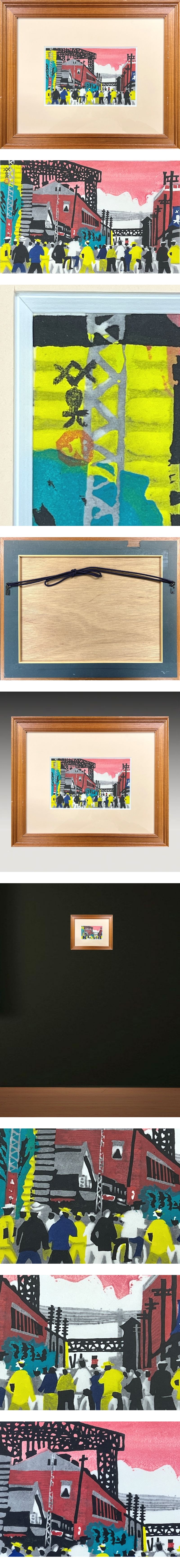 【FCP】 真作保証 川西英 木版画15.2x25.3cm 「神戸百景(33)造船職工出勤」1935年作 国画会会員 日本版画協会会員 勲五等瑞宝章 k 收藏