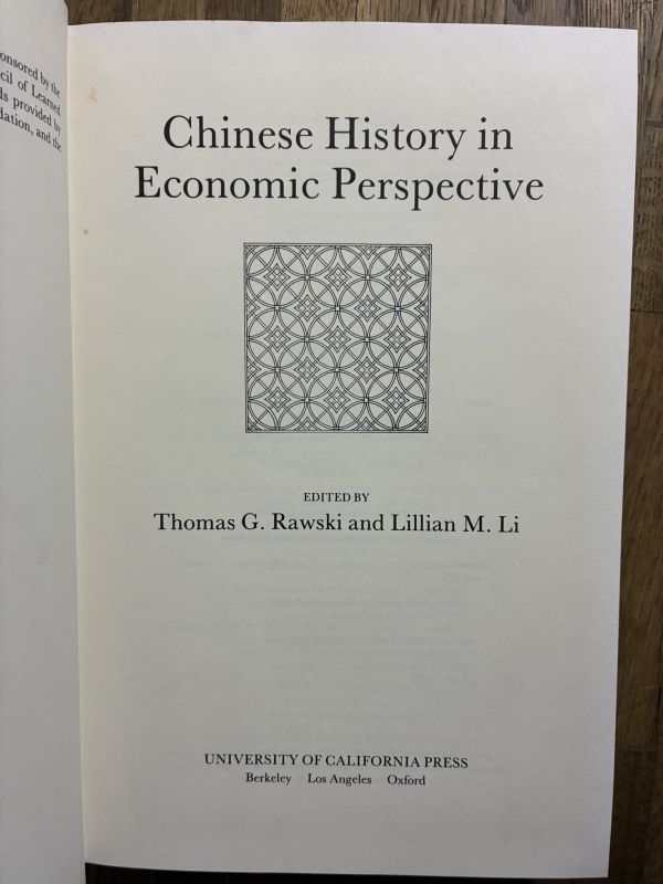 Thomas G. Rawski & Lillian M. Li 編 Chinese History in Economic Perspective|中国経済史|University of California Press 洋書 收藏