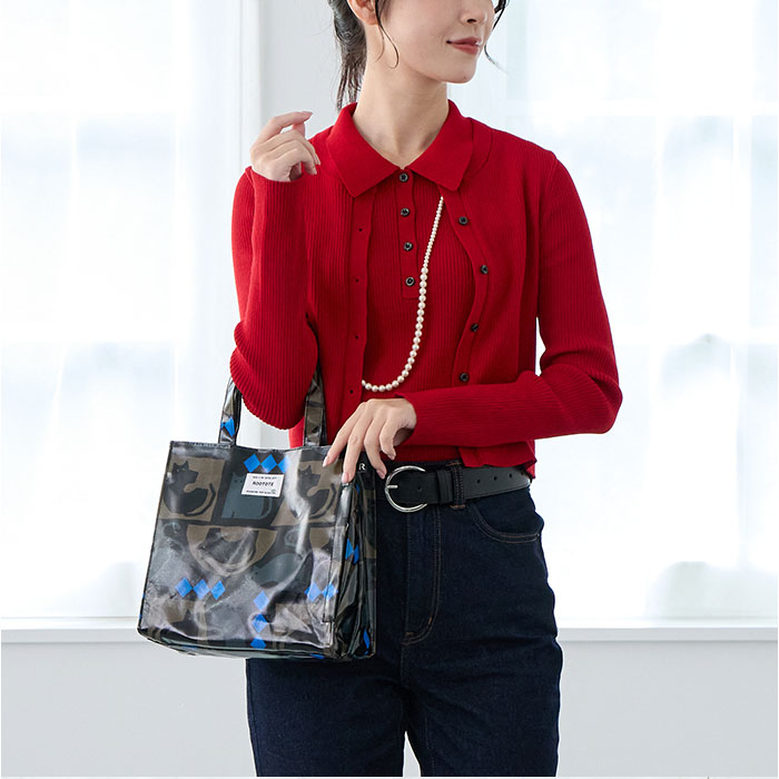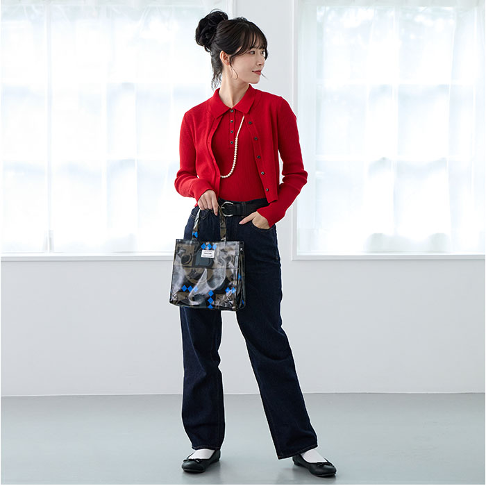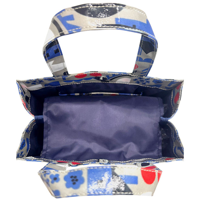 | 素材 | 表地:綿(ノンフタル酸PVCラミネート加工)/裏地:ポリエステル 持ち手:綿(ノンフタル酸PVCラミネート加工)/留め具:マグネットホック |