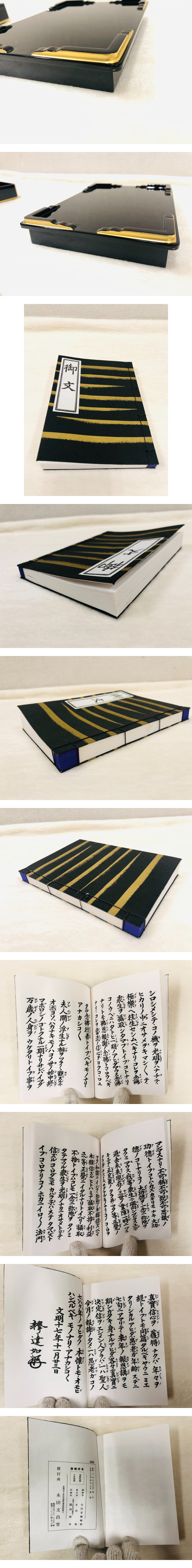 仏壇 仏具 寺院 仏教美術 / 真宗大谷派<東本願寺>御文 第二十代法主 釋達如 1冊・御文箱 木製 中型 黒面粉 1個 経本 古文書 荘厳 美品 收藏