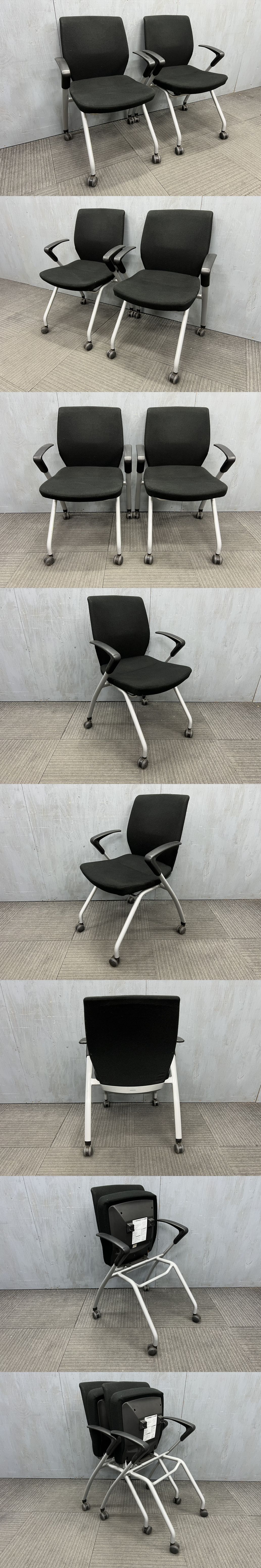 ◆管1624◆自社便対応地域あり◆コクヨ製◆肘付きネスティングチェアー 2脚セット◆会議 ミーティング◆黒 ブラック 收藏