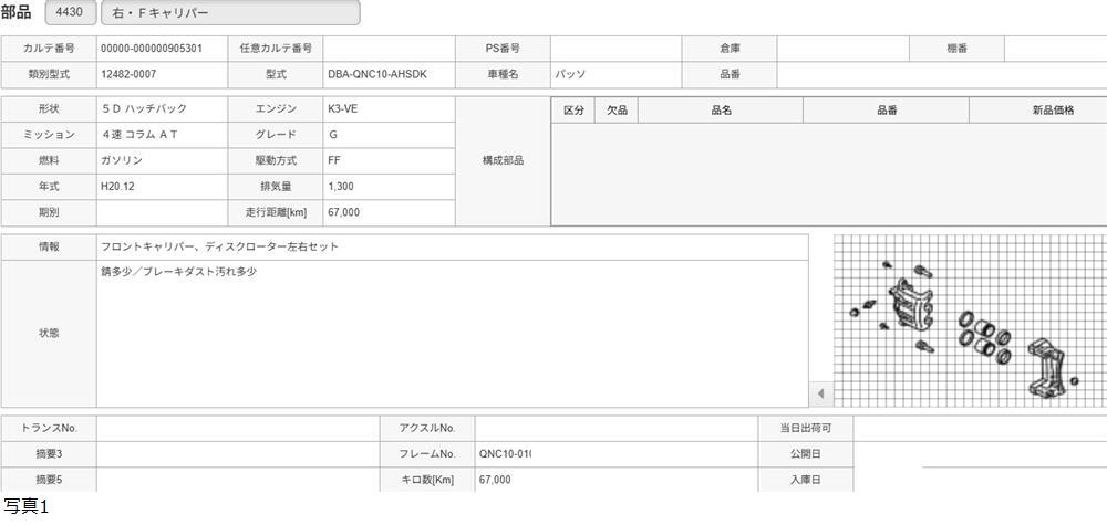 H20年 QNC10 パッソ フロントキャリパー ディスクローター 左右セット/送料 SS/905301 收藏