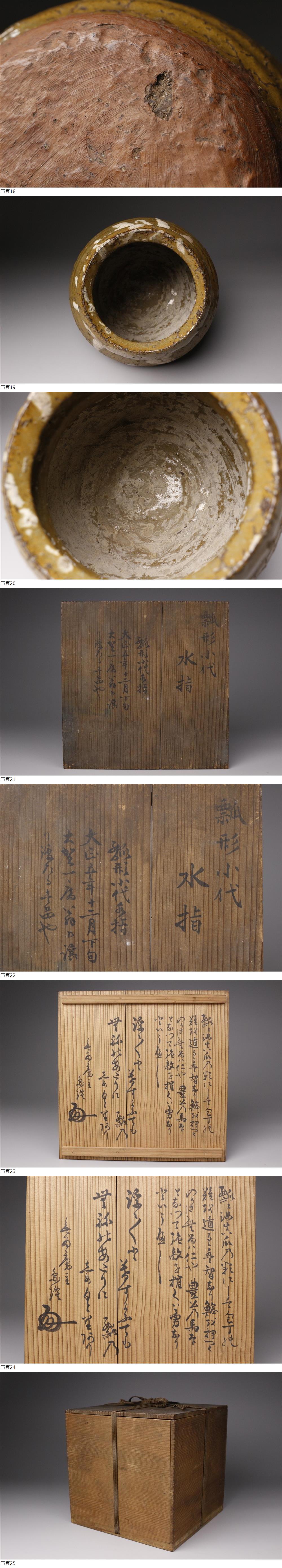 【LIG】時代小代焼 瓢形水指 茶道具 大正五年 茶人書付箱 旧家蔵出品 2602253 收藏
