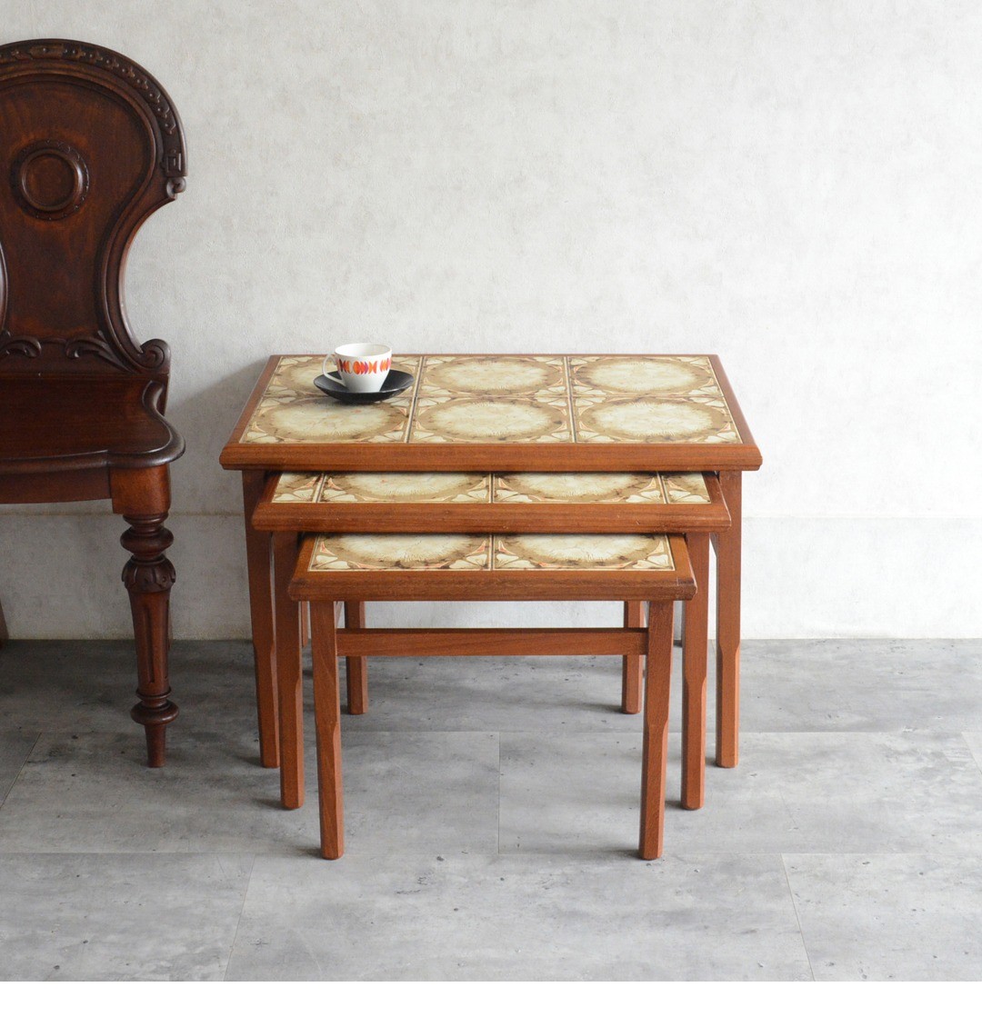 【メンテナンス済】ミッドセンチュリー イギリス ヴィンテージ タイルトップ ネストテーブル チーク サイドテーブル ナイトテーブル 收藏