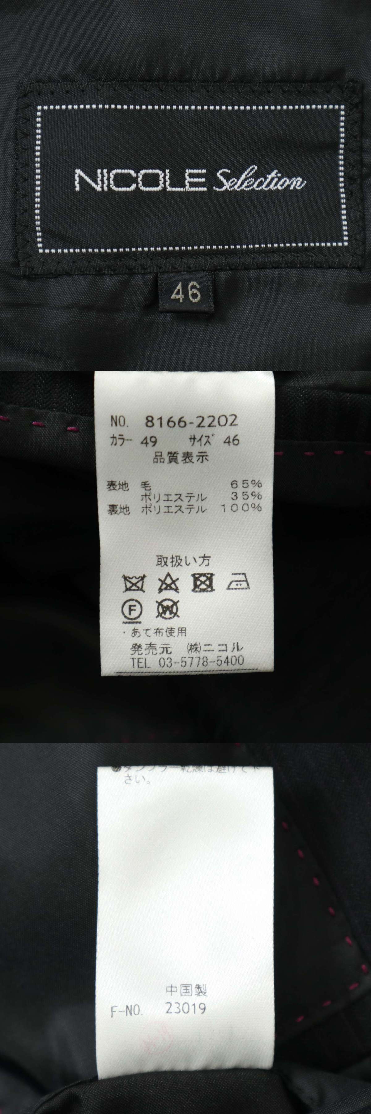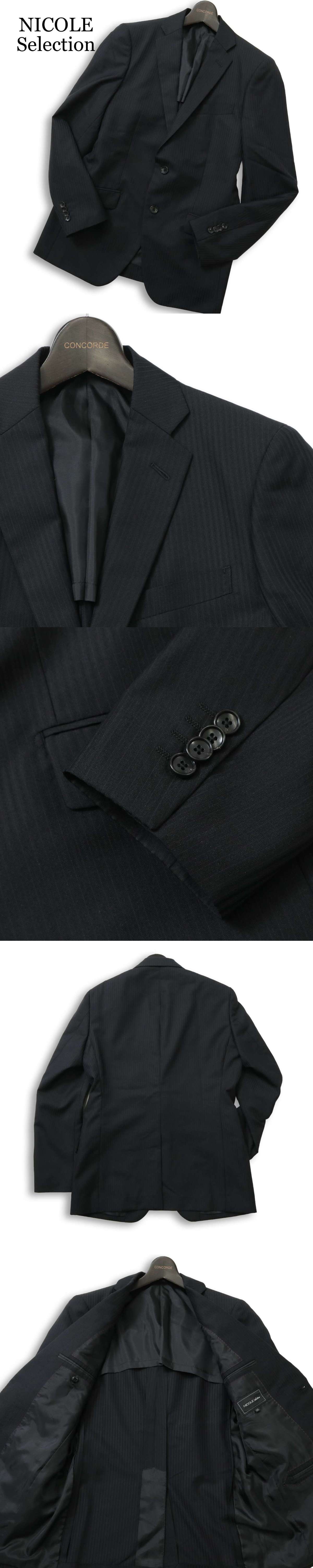 NICOLE Selection ニコル セレクション 通年 背抜き ウール★ ストライプ テーラード ジャケット Sz.46 メンズ 黒 收藏