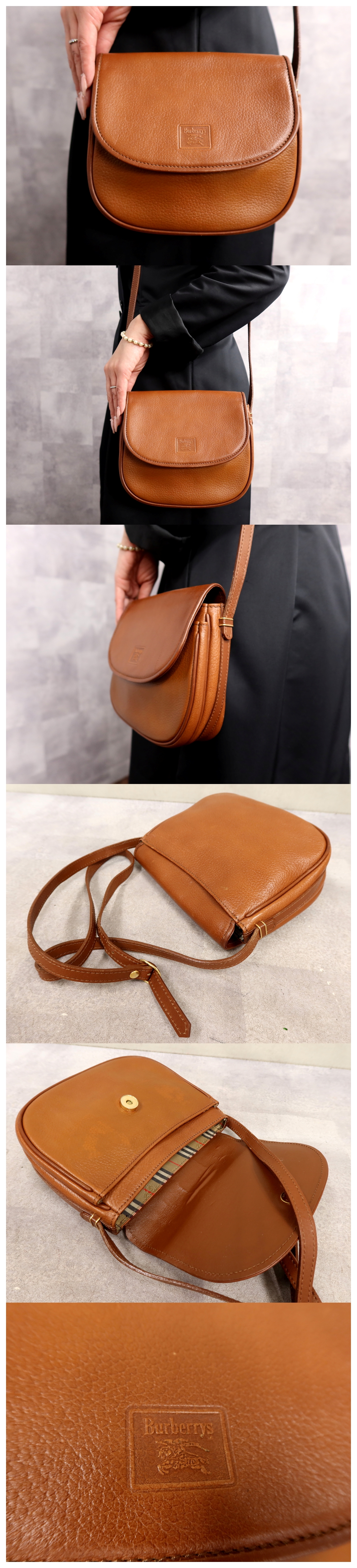 超美品●BURBERRY バーバリー●内ノバチェック●ロゴ型押し●カーフ レザー●ショルダー バッグ●ブラウン●G金具●ヴィンテージ●Js65128 收藏