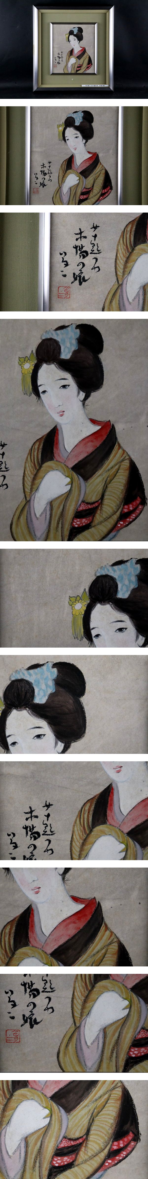 【模写】竹久夢二 「木場の娘」 日本画3号 額装 裏書 夢二コレクター所蔵品 收藏
