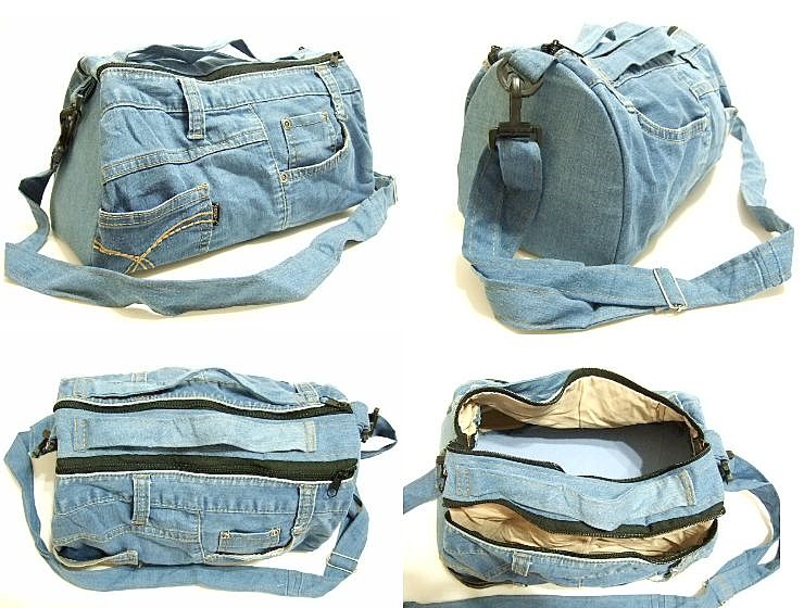 横浜最新 魅惑のデニム手提げ&ショルダーツーウェイリメイク軽量バッグ♪2連巾広チャック 巾31cm 縦16cm マチ16cm底板付き 送料無料heia29 收藏
