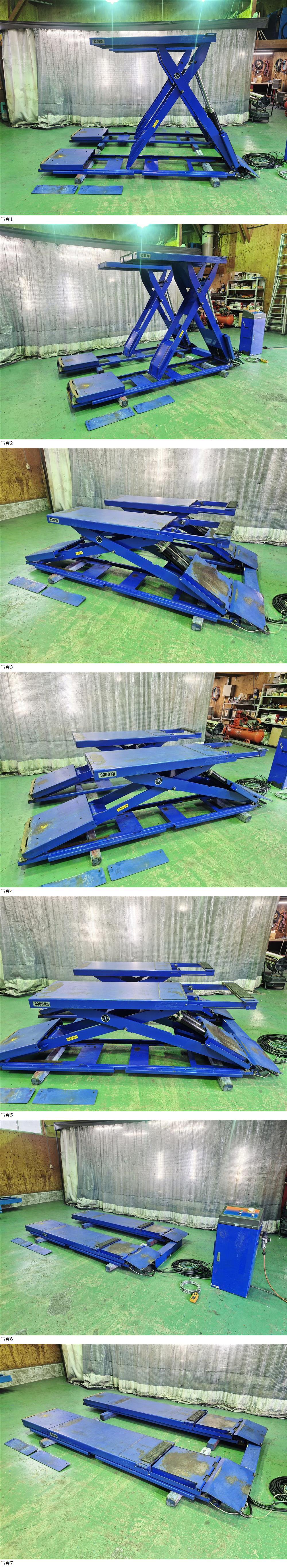 ☆中古 シザースリフト HESHBON ヘスボン HL-32X 最大使用能力3.3t 最高上昇高さ1953mm 受台スライド式 埋設設置仕様 三相200V 自動車整備 收藏