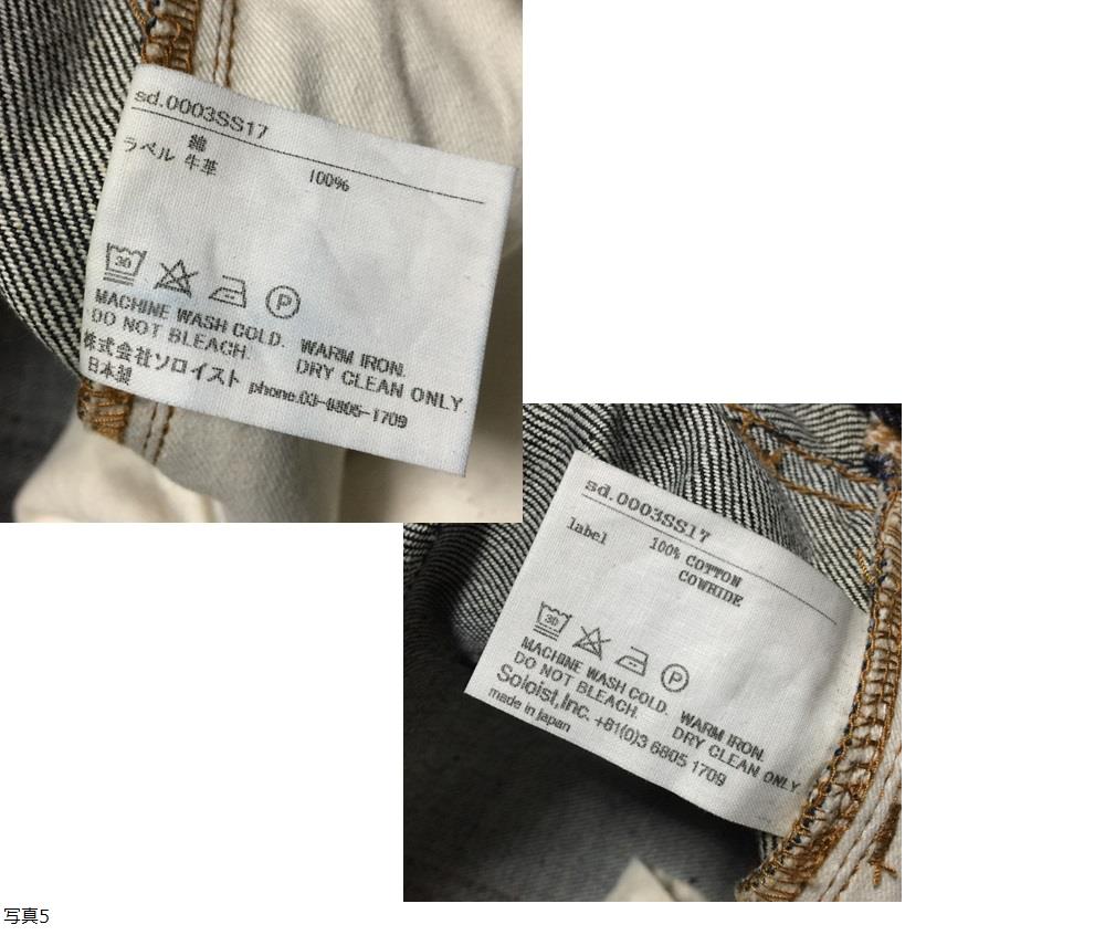 | 【ブランド】 TAKAHIROMIYASHITA The Soloist. タカヒロミヤシタザソロイスト. 2010年、元ナンバーナインのデザイナー宮下貴裕がブランド設立。2010年7月、宮下貴裕が「タカヒロミヤシタザソロイスト.(TAKAHIROMIYASHITATheSoloist.)」1stコレクションとなるウィンターコレクションを展示会形式で発表。ブランド名にある“TheSoloIst.”とは、洋服に携わる各個人が“独奏家”として孤高の精神を持ち合わせて欲しいというデザイナー宮下貴裕の願いであり、また再び洋服の世界へ戻ってきたという自分への不退転の決意の表れ。 【デザイン・モデル】 sd.0003SS17 2017SS lone star classic tight straight jean 牛革パッチ スター刺繍 赤耳 インディゴ リジット セルビッチ デニムパンツ 【生産】 株式会社ソロイスト 日本製 【詳細・コメント】 TAKAHIROMIYASHITA The Soloist. タカヒロミヤシタザソロイスト. デニムパンツになります。SOLOISTの定番でリリースされているリジットデニム。両サイドのポケットに施された刺繍や、バックポケットの織りネームがアクセントに。タイトストレートの細身シルエットは大人っぽく、合わせ方によってモードやジャケットスタイル、ストリートにもハマる汎用性の高いデニムパンツかと思います。洗練された流行に左右されない高品質な1本をお探しの方にもオススメです。 もちろん正規品です。定価\30,690(税込み) 【サイズ】 表記: W32 L30 (股下はカットしています)※実寸を参考にして下さい。 平置実寸:ウエスト80㎝ 股上27cm 股下72㎝ ワタリ幅29㎝ 裾幅19㎝ ※多少の誤差はご了承ください。 【カラー・パターン】 濃紺 INDIGO インディゴ ※ご覧になられるモニターや、デジカメの撮影具合によって色味が異なる場合がございますのであらかじめご了承ください。 【品質】 表地:綿100% ラベル:牛革 leather 【コンディション】 ほぼ未使用です。リジット(ノンウォッシュ)です。使用感無くきれいです。※写真参考に判断して下さい。ユーズドアイテムにご理解ある方のみご入札お願い致します 。 | |||