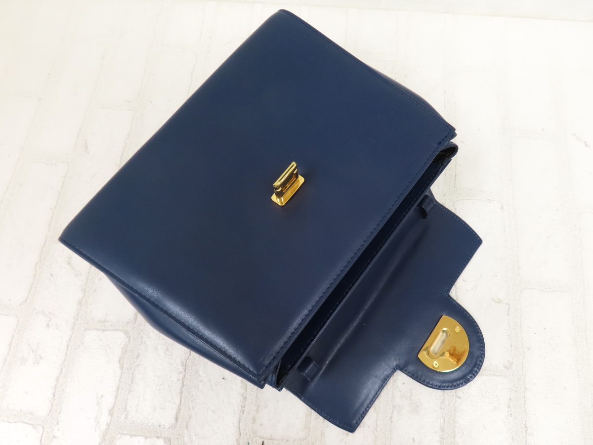 ◆超美品◆GIVENCHY ジバンシィ◆カーフ レザー 本革◆ハンド バッグ◆ネイビー ゴールド金具◆トップハンドル◆フラップ◆A15920 收藏