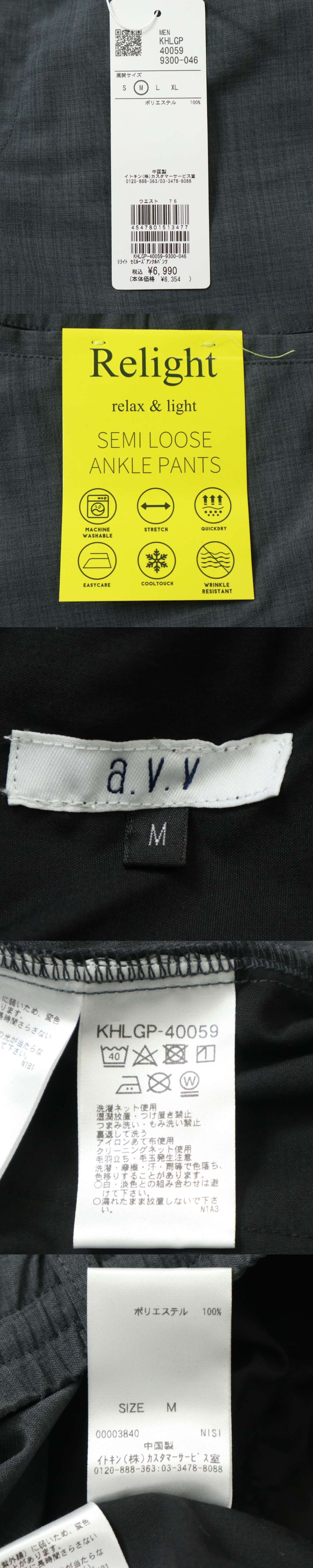 【新品 未使用】 a.v.v アーヴェヴェ 春夏 Relight★ セミルーズ アンクル丈 イージー パンツ Sz.M メンズ 灰 グレー 收藏