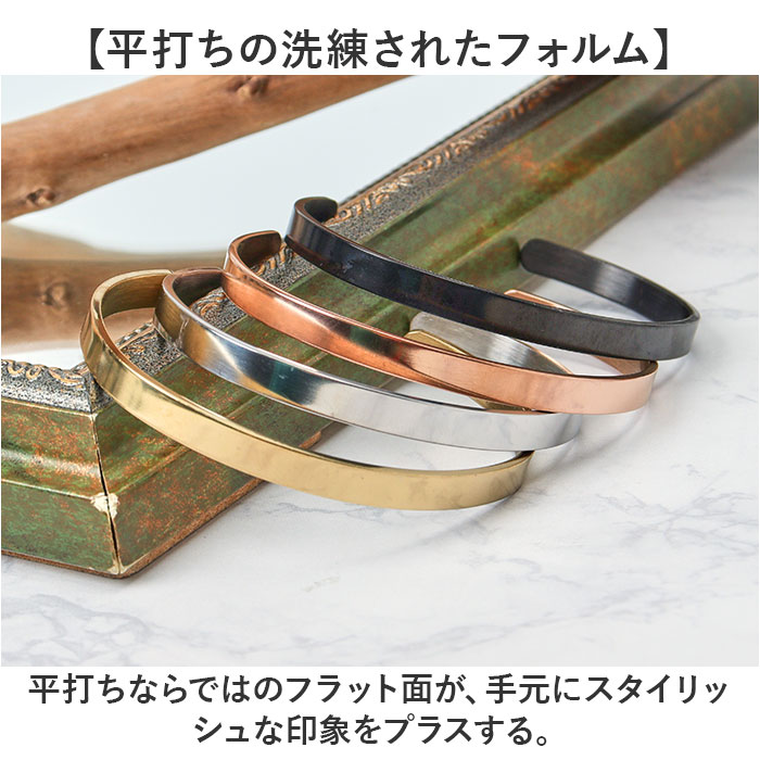 ☆ ピンクゴールド ☆ 4mm ☆ 平打ちプレーンバングル CHRONOM ハングル プレーン メンズ 平打ちプレーンバングル プレーンバングル 收藏
