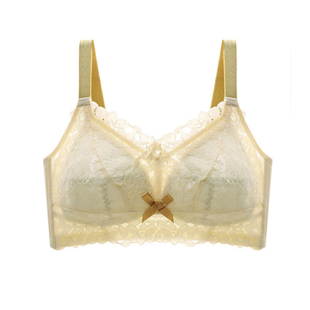 ☆ ライトイエロー ☆ 42/95B ☆ 胸を小さく見せる ブラジャー ブラジャー ノンワイヤー フルカップ 下着 レース インナー 小さくみせる 收藏
