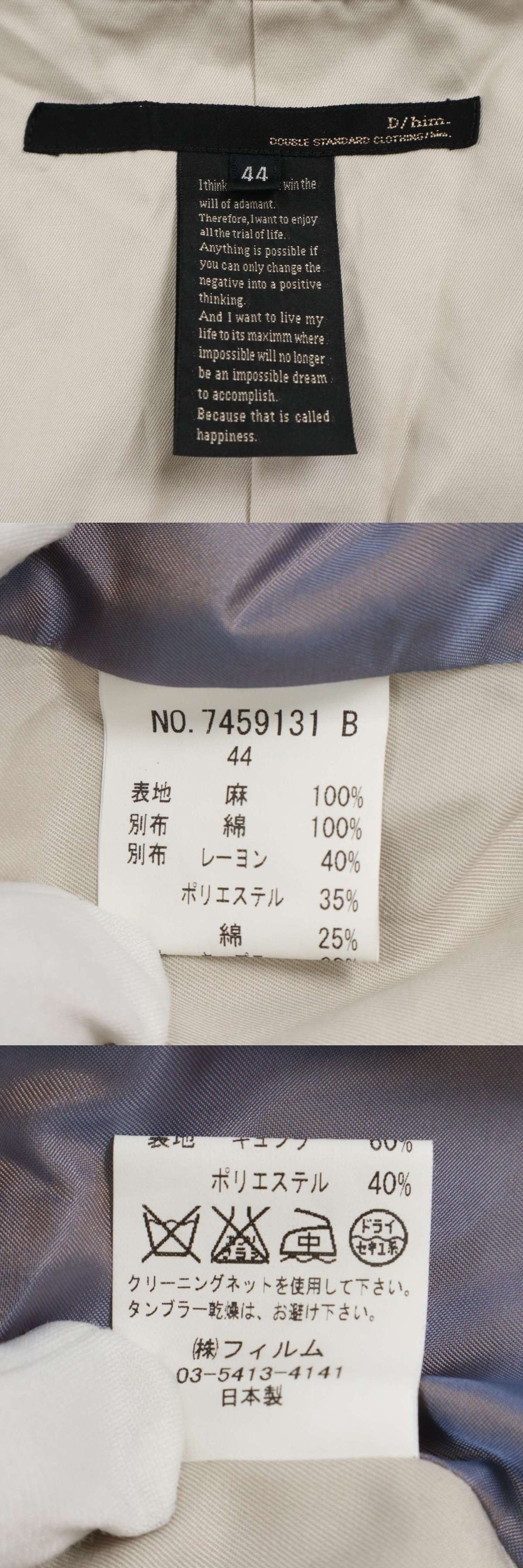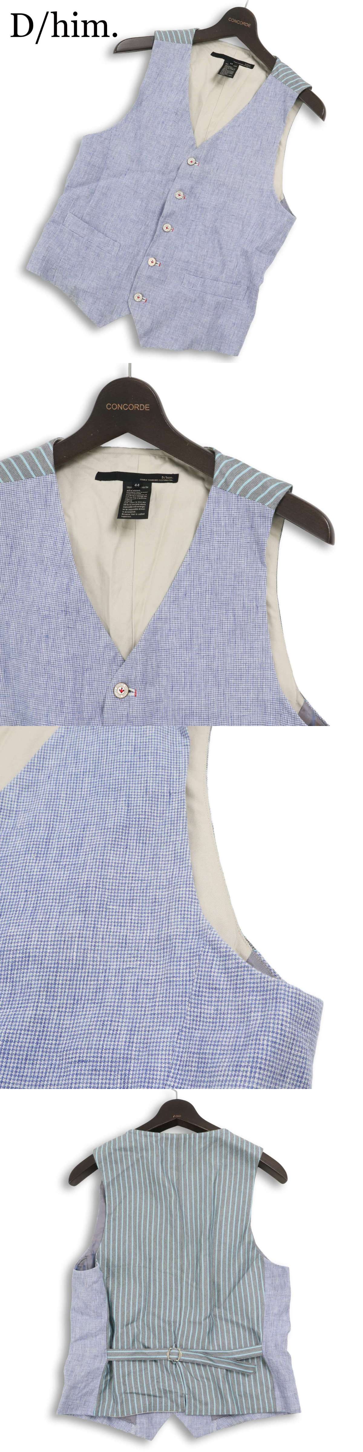 D/him. ダブルスタンダード クロージング 春夏 麻 リネン★ 千鳥格子 ストライプ 切替 ベスト ジレ Sz.44 メンズ 日本製 收藏