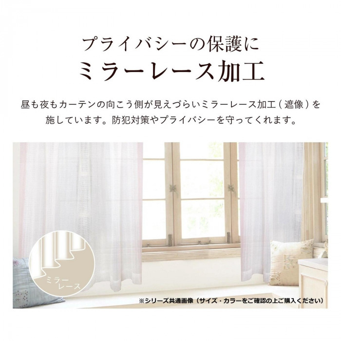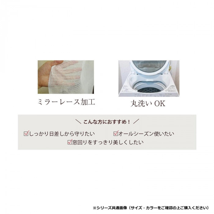 届いてすぐに使える厚地カーテン+レースカーテン4枚セットです。昼も夜もカーテンの向こう側が見えづらいミラーレース加工(遮像)を施しています。防犯対策やプライバシーを守ってくれます。おうちで丸洗いOKなので、いつでも清潔に保てます。
