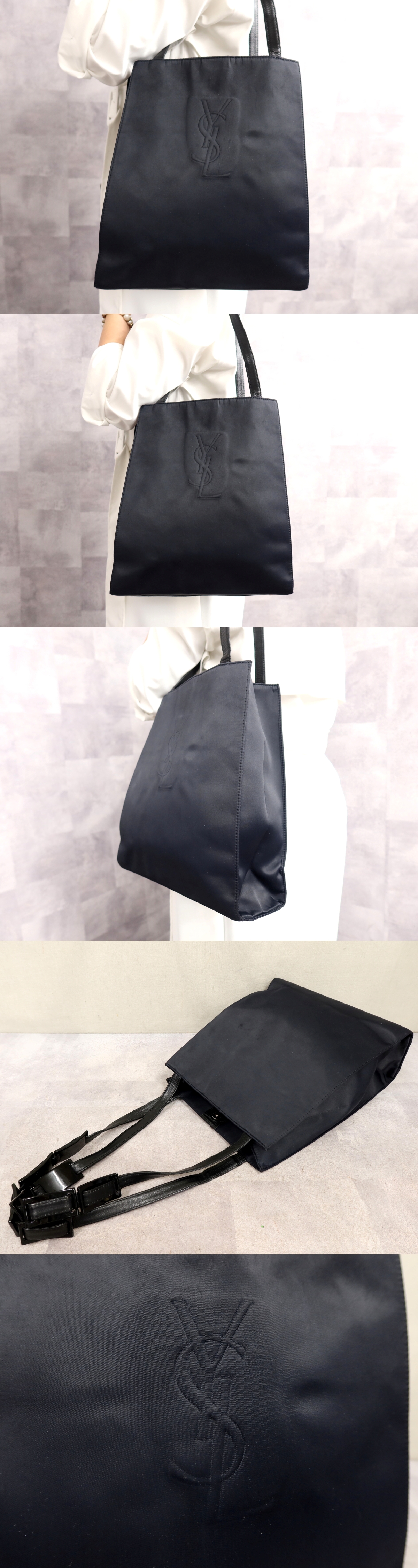 ●超美品●YSL イヴ・サンローラン●プラスチックチェーン●ナイロン カーフ レザー 本革●ショルダー バッグ●ネイビー 黒●B5●Js66736 收藏