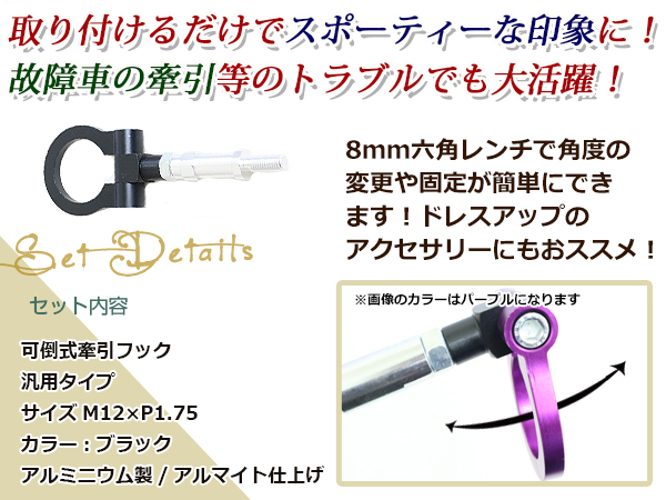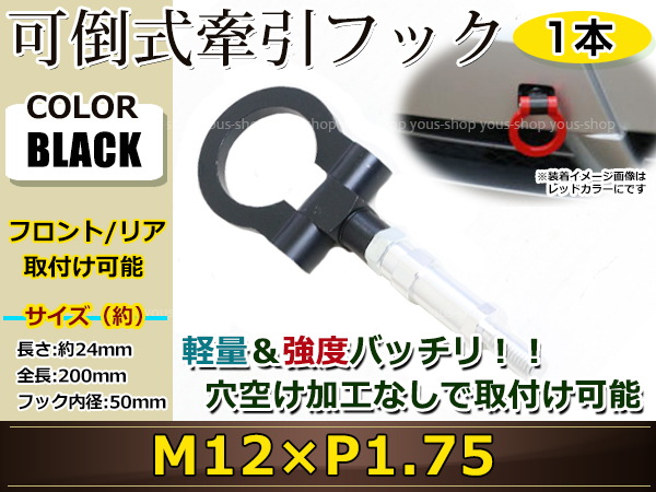 けん引フック 牽引フック トーフック フロント リア 折り畳み 可倒式 脱着式 軽量 トーイングフック レスキュー S2000 AP1 M12×P1.75 黒 收藏