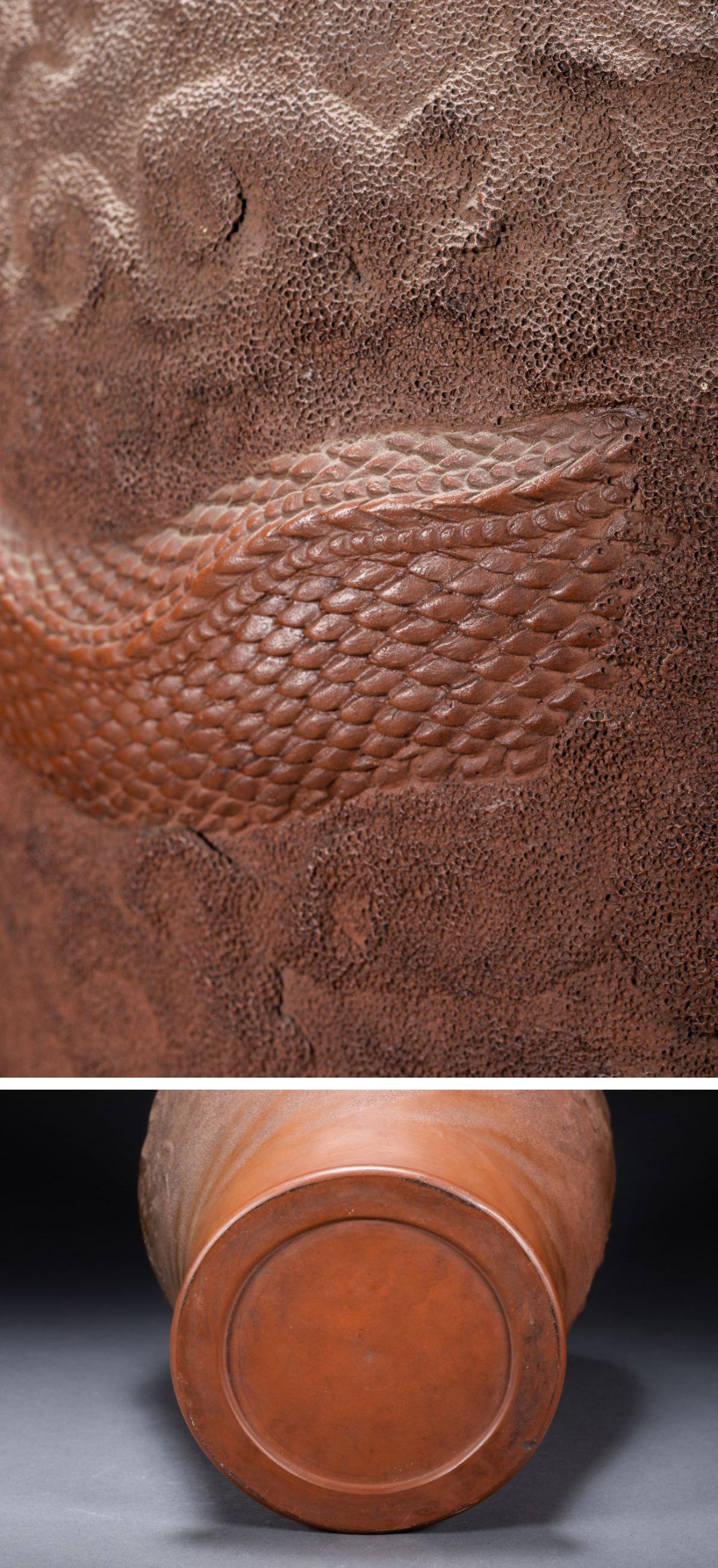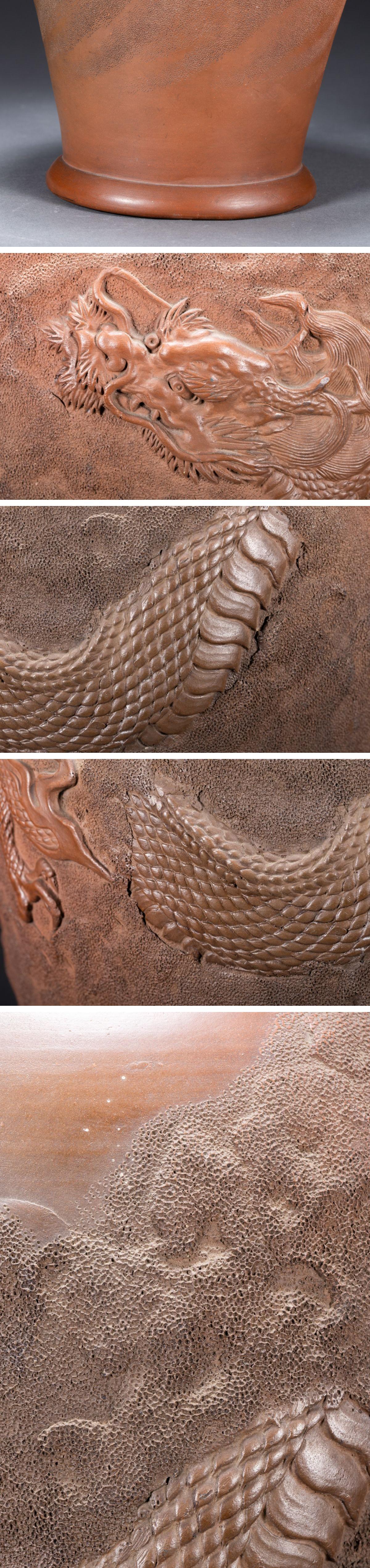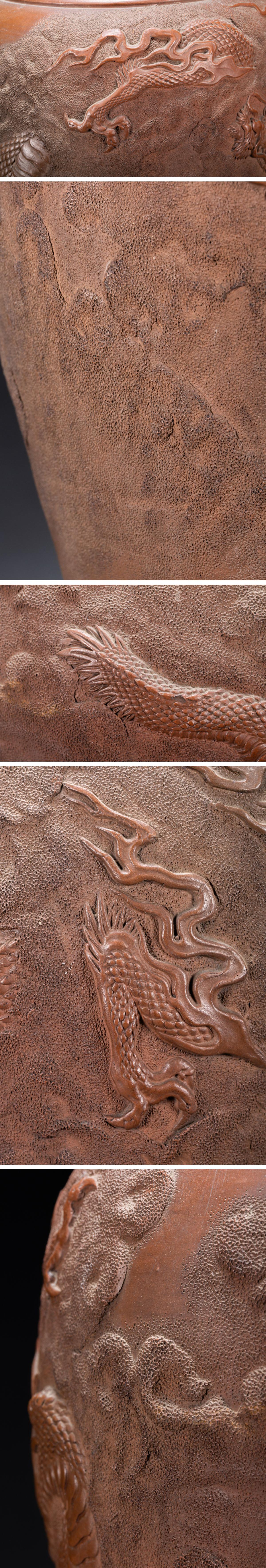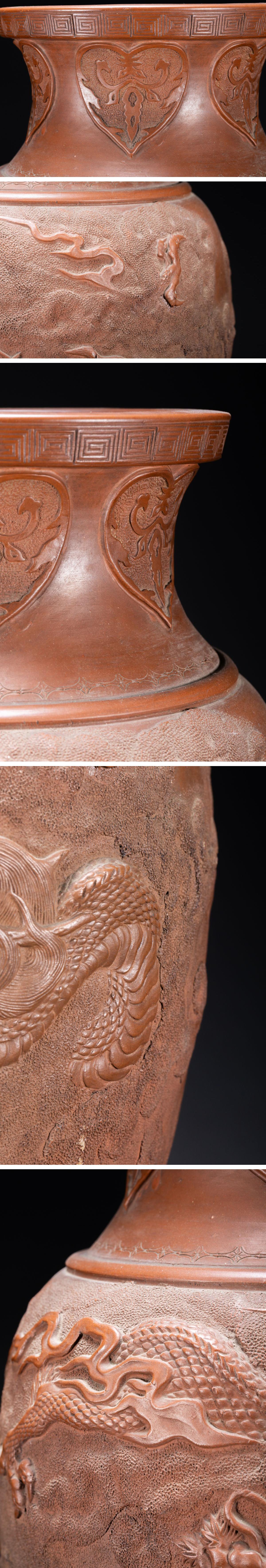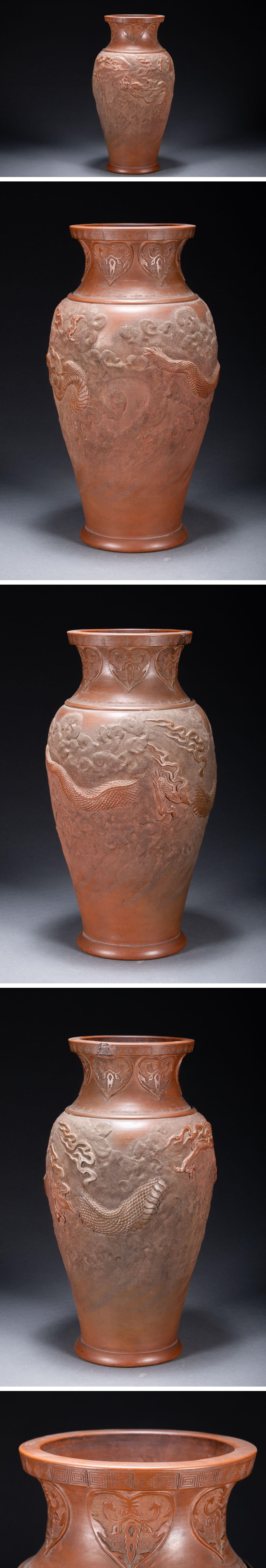 【雲錦】1円から 時代物 中国伝来 紫砂朱泥 雲龍文巨大花瓶 花生 古美術 骨董品1225-153S2