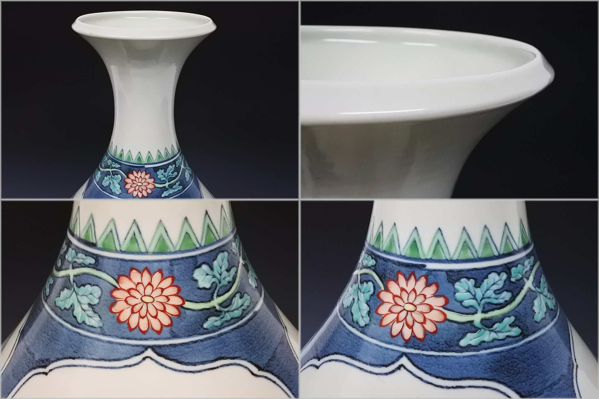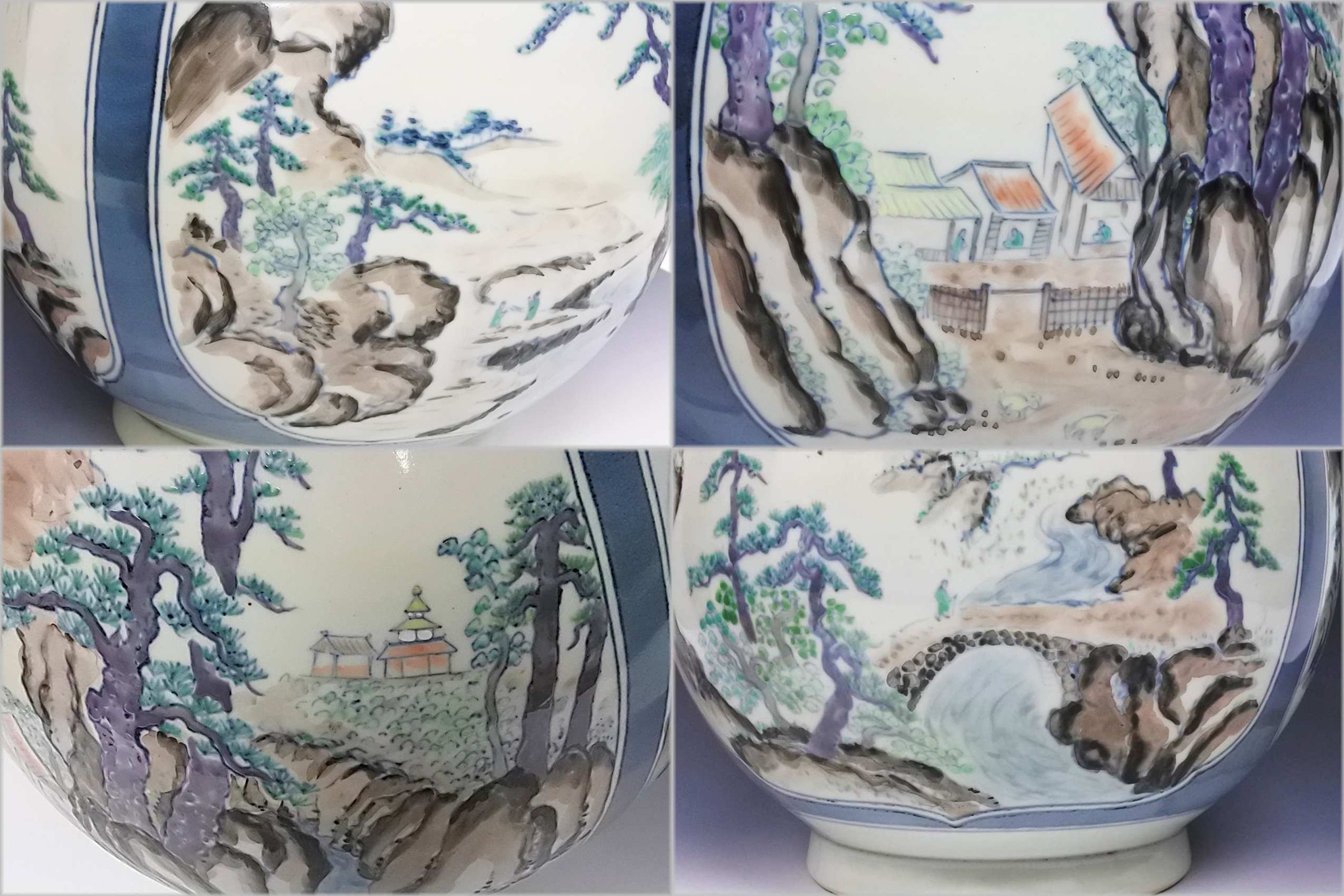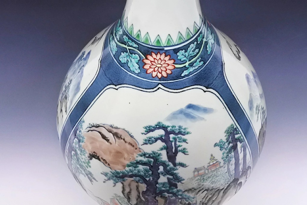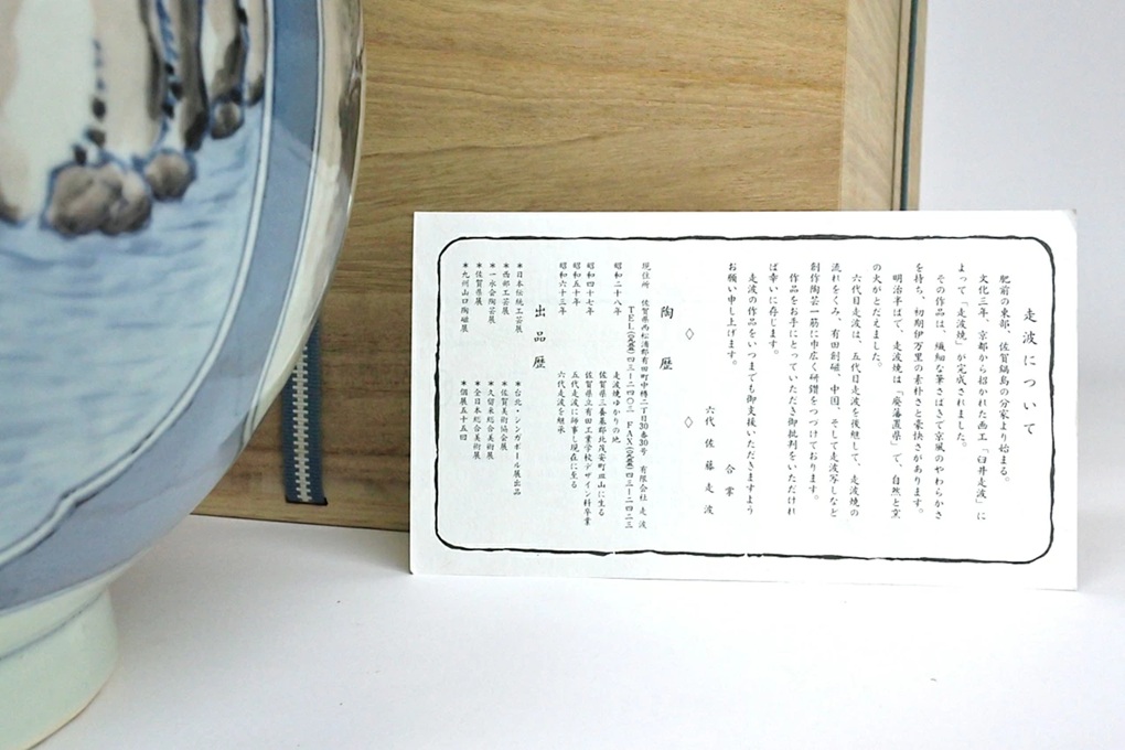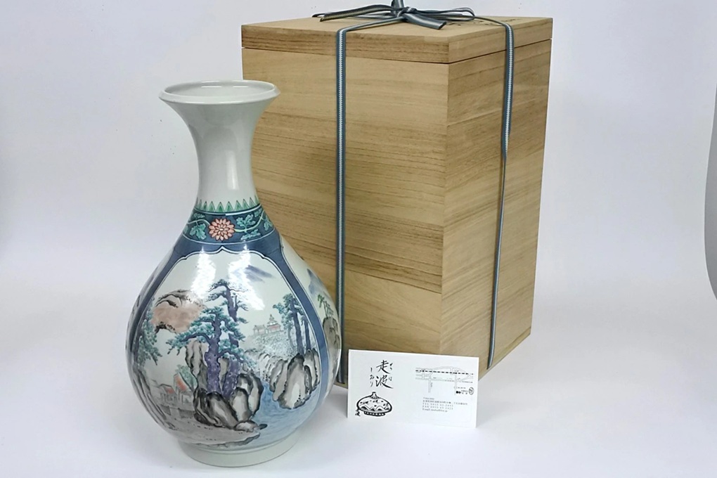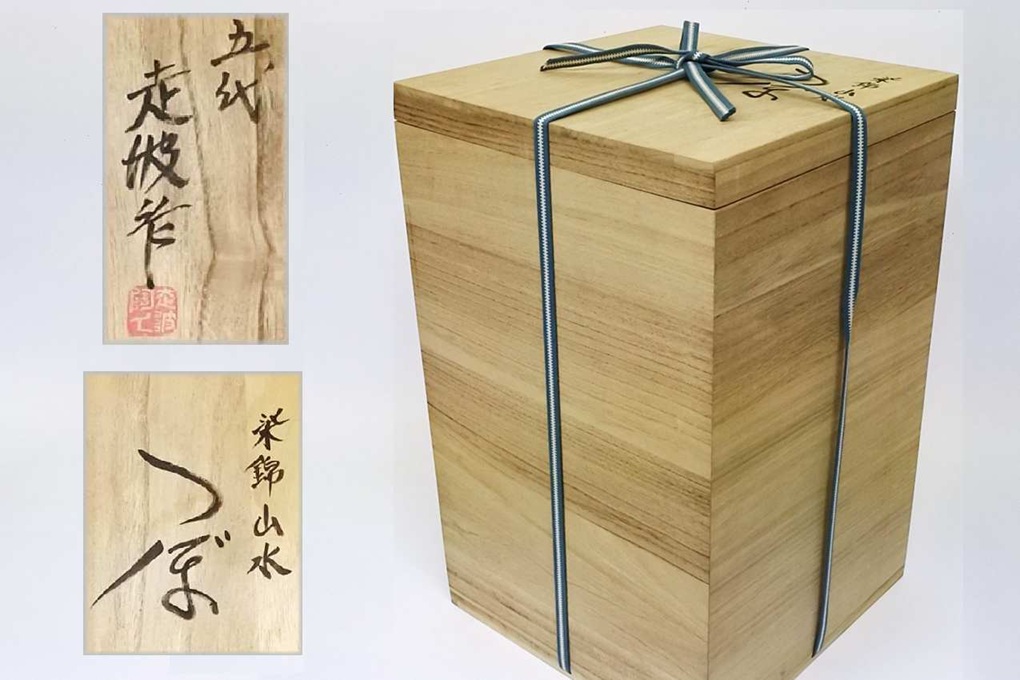 逸品 佐藤走波 作 六五歳 染錦山水 つぼ 花瓶 飾り壺 共箱 栞 名工品 未使用 栞付 保管品 和モダン 和風 日本製 收藏