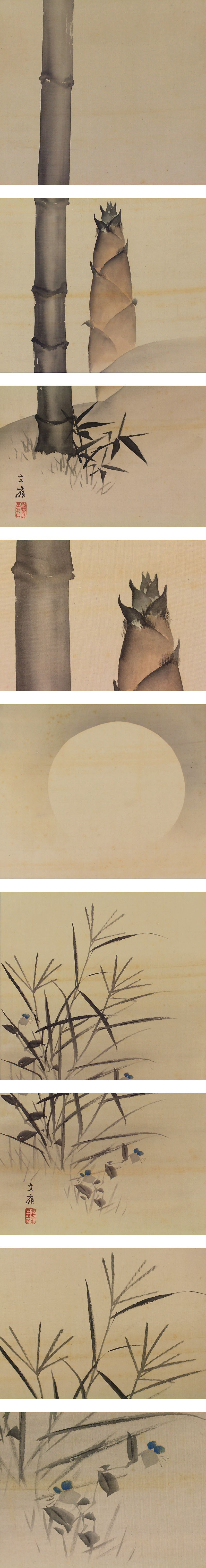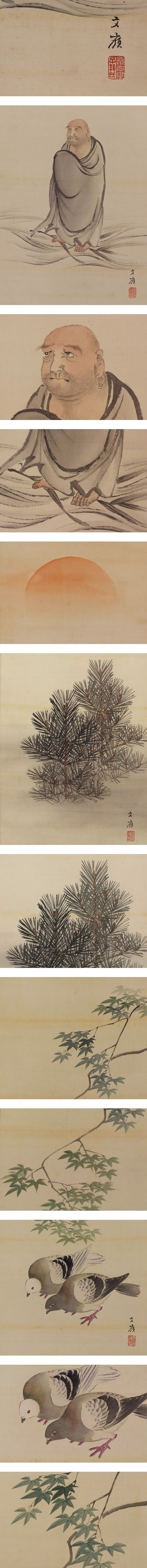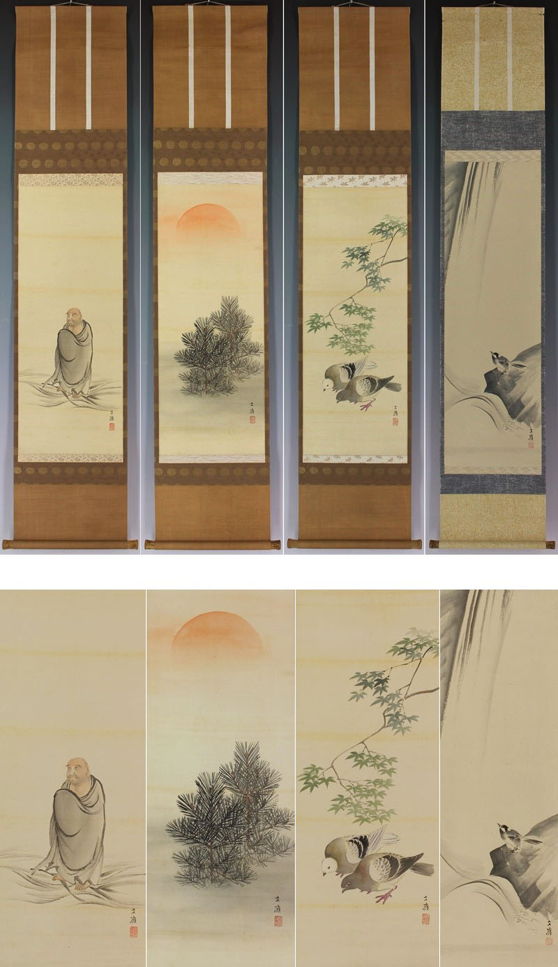 | №1504033 【真作】前川文嶺【八対幅 四季取合之図】◆絹本◆合箱◆掛軸 | |