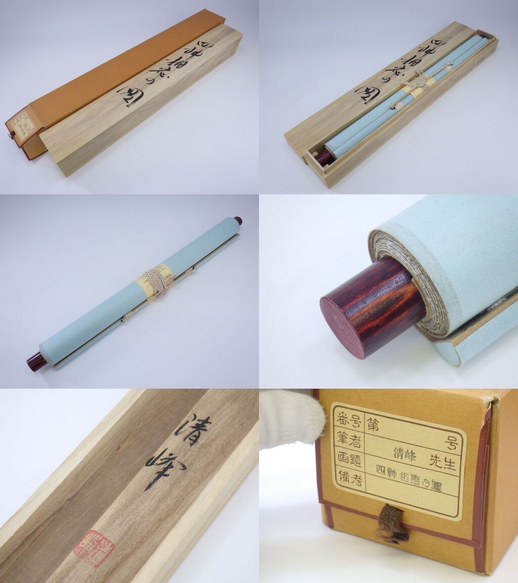 ※下記、【商品詳細】及び【落札後のご案内・注意事項・備考】欄をお読みいただき、ご理解頂いた上でご入札頂けますようお願い致します。 ![]() ![]() ![]() ![]() ![]() ![]() 《商品詳細 》 ◆掛軸 清峰/寿道 四神相應之図 絹本 共箱 タトウ箱付き有 2点を出品致します。 ◆おまとめ品の為、採寸は行っておりません。 ◆清峰 四神相應之図 絹本 ◆寿道 四神相應之図 絹本 トップアート ◆付属品:共箱・タトウ箱(1点) 《商品状態 》 ◆中古品となります。 ◆本紙にはシミがございます。裏側に汚れのある物もございます。 ◆タトウ箱の留め具が欠損しております。 [ ※商品についての注意事項 ] ◆ いずれも画像を良くご確認頂き、ご自身の判断で納得されたうえで入札をお願い致します。 ◆ 画像につきましてはデジカメ撮影の為、実際の色合いと異なる事もありますのでご了承ください。 |