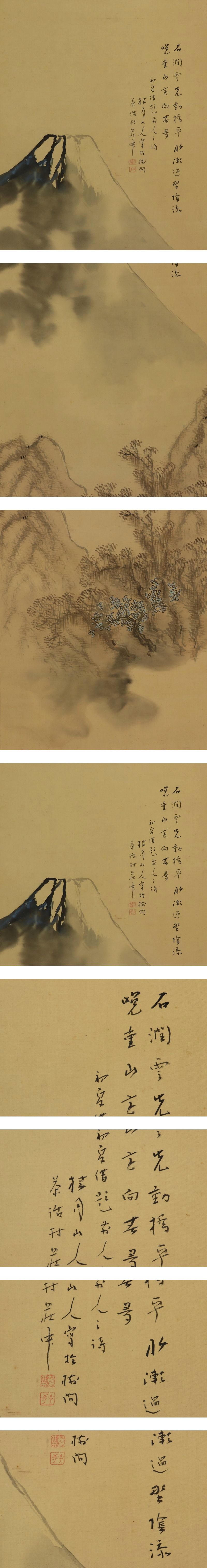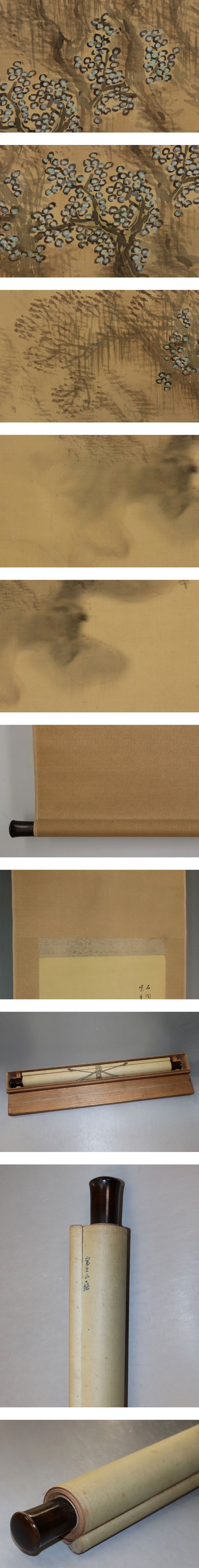 松林桂月 まつばやし-けいげつ(1876-1963) 明治-昭和時代の日本画家。 明治9年8月18日生まれ。野口幽谷(ゆうこく)に文人画をまなぶ。日本美術協会展、文展に出品。 帝展の審査員、帝国美術院会員、帝室技芸員となる。戦後、日本美術協会理事長。 昭和33年文化勲章。昭和38年5月22日死去。86歳。山口県出身。旧姓は伊藤。本名は篤。 本紙は、染み、汚れ、ヤケがあります。 表装は、染み、汚れ、皺、軸先に擦れがあります。 【サイズ】 作品 横約41.5cm×縦約126cm 表装 横約56.5cm×縦約207cm |