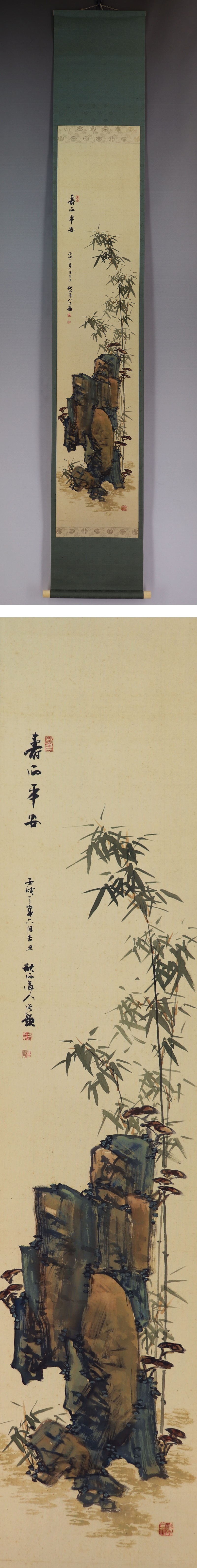 №2009005【真作】奥谷秋石【寿石平安】◆絹本◆合箱◆掛軸 | |