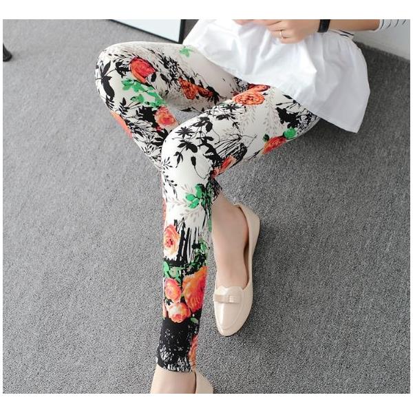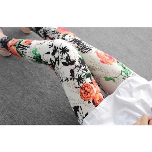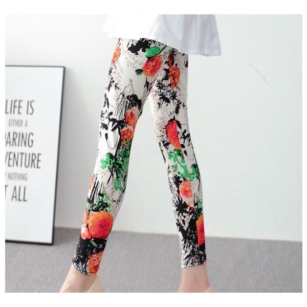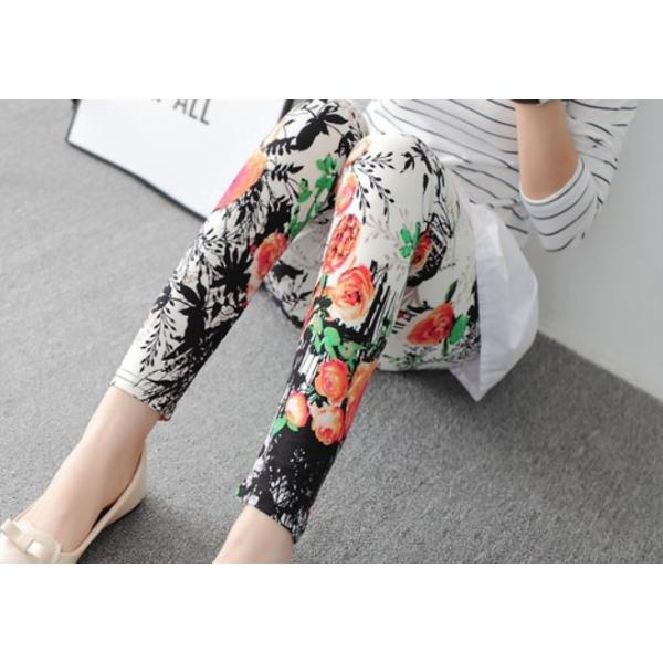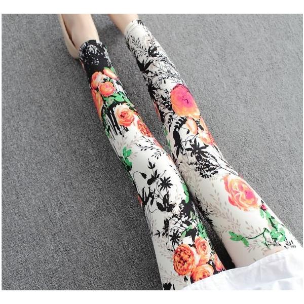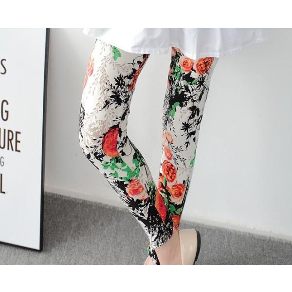 レディース 鮮やか 赤い 薔薇 レギンスパンツ 花柄 レギパン レギンス 收藏