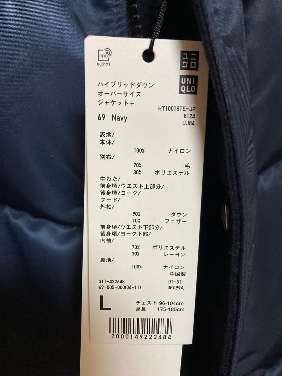 新品 UNIQLO ハイブリッドダウンオーバーサイズジャケット Lサイズ ネイビー ダウンジャケット 收藏