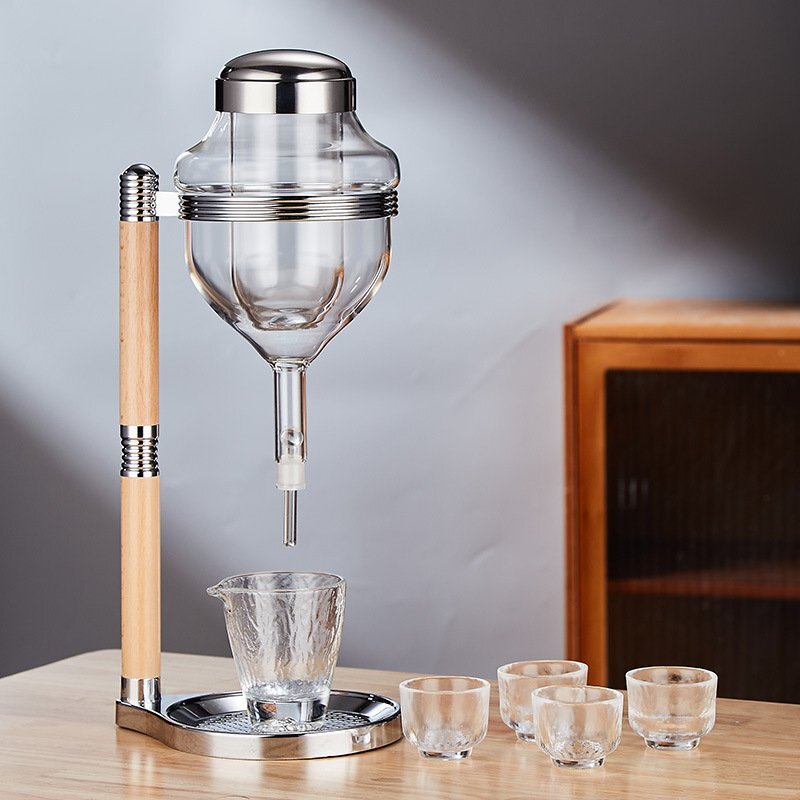 OHJ1491★上質冷酒器セット カップ5個付き 日本酒 ディスペンサー 酒 ガラス酒器セット 和風冷酒ポット 冷酒耐熱ガラス 酒器 ワインセット 收藏