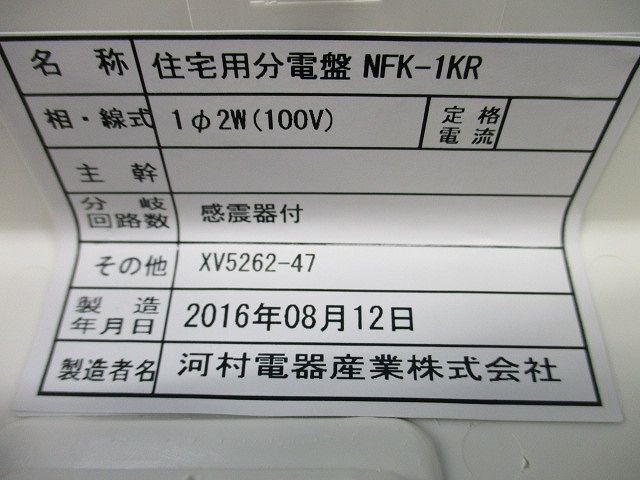 | 商品名 | ● 住宅用分電盤 感震リレー NFK-1KR ● |