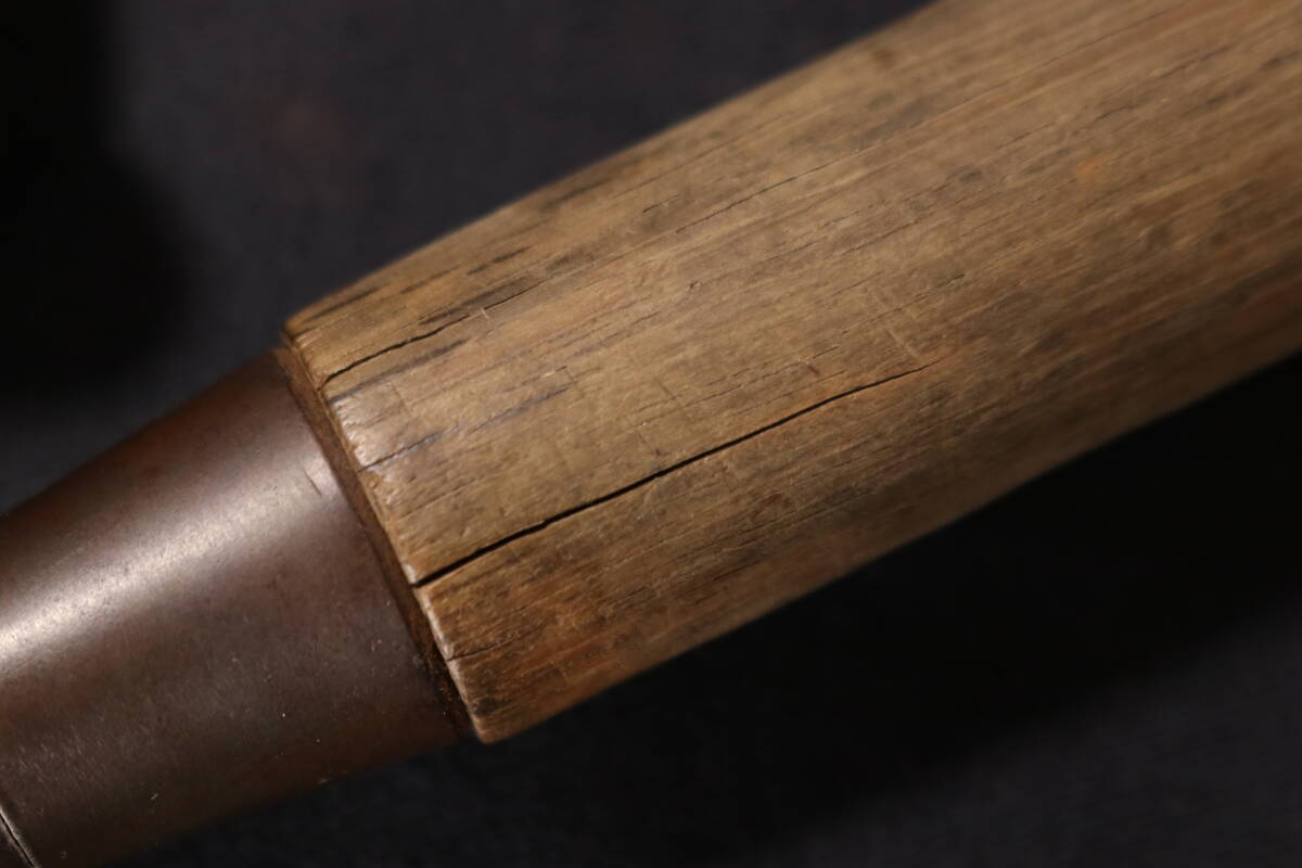 鋼に経年なりサビ、24mm新潮の柄に少割れ数か所あり、古い物ですので、状態が気になる方はお控え頂ければと思います。