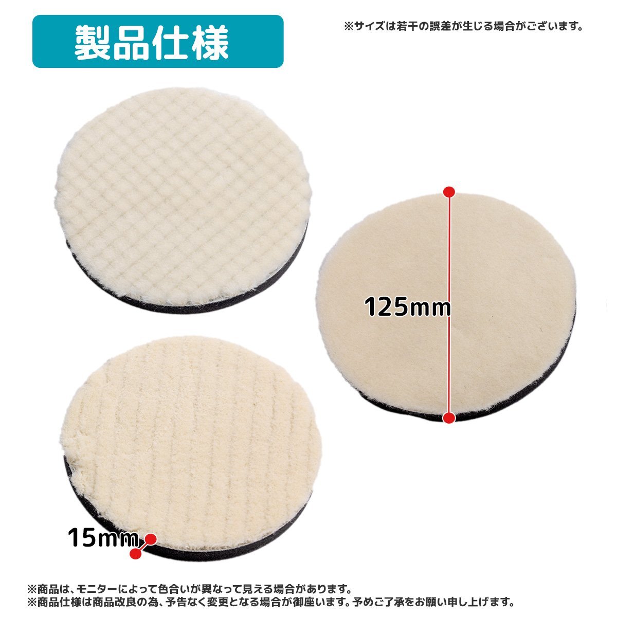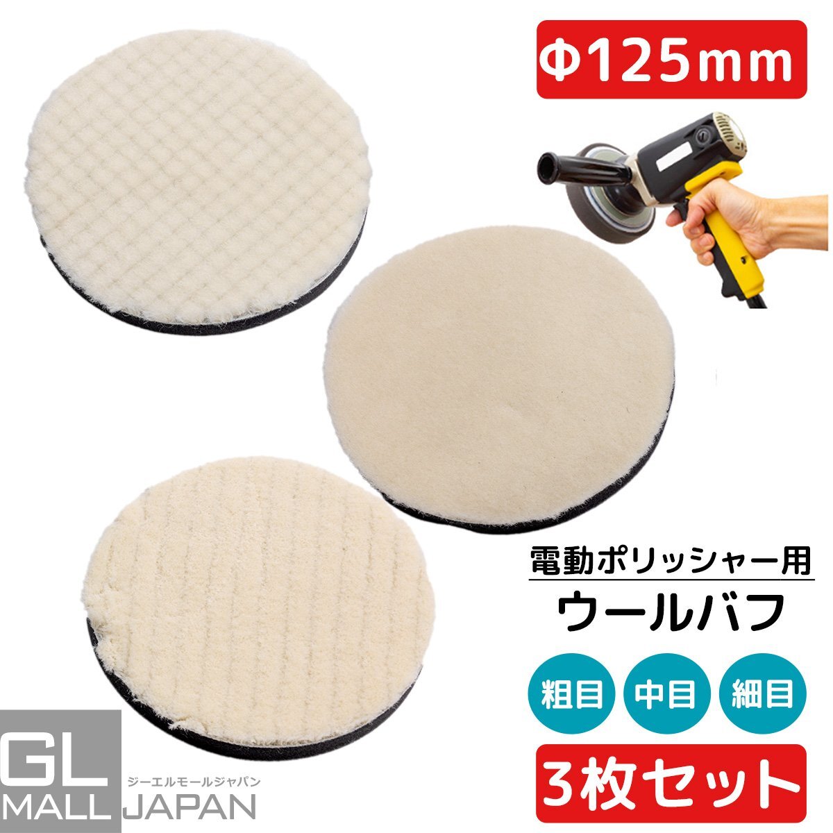 【クリックポスト】ウール研磨バフ 研磨パッド 125mm 細目中目粗目 マジック式 電動ポリッシャー 車 3種類入り ●送料無料 收藏