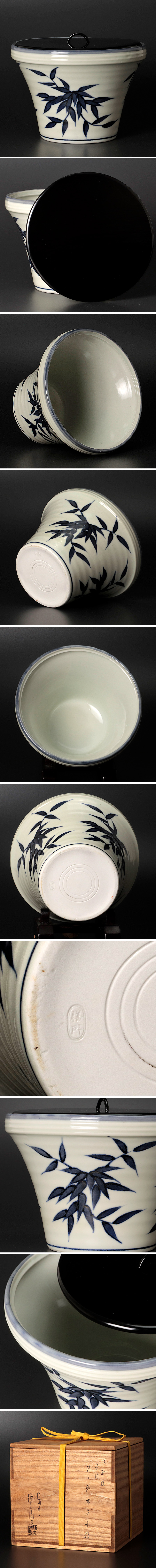 | 【古美味】淡海ぜぜ 陽炎園造 膳所焼 染付竹ノ絵 末広水指 茶道具 保証品 |