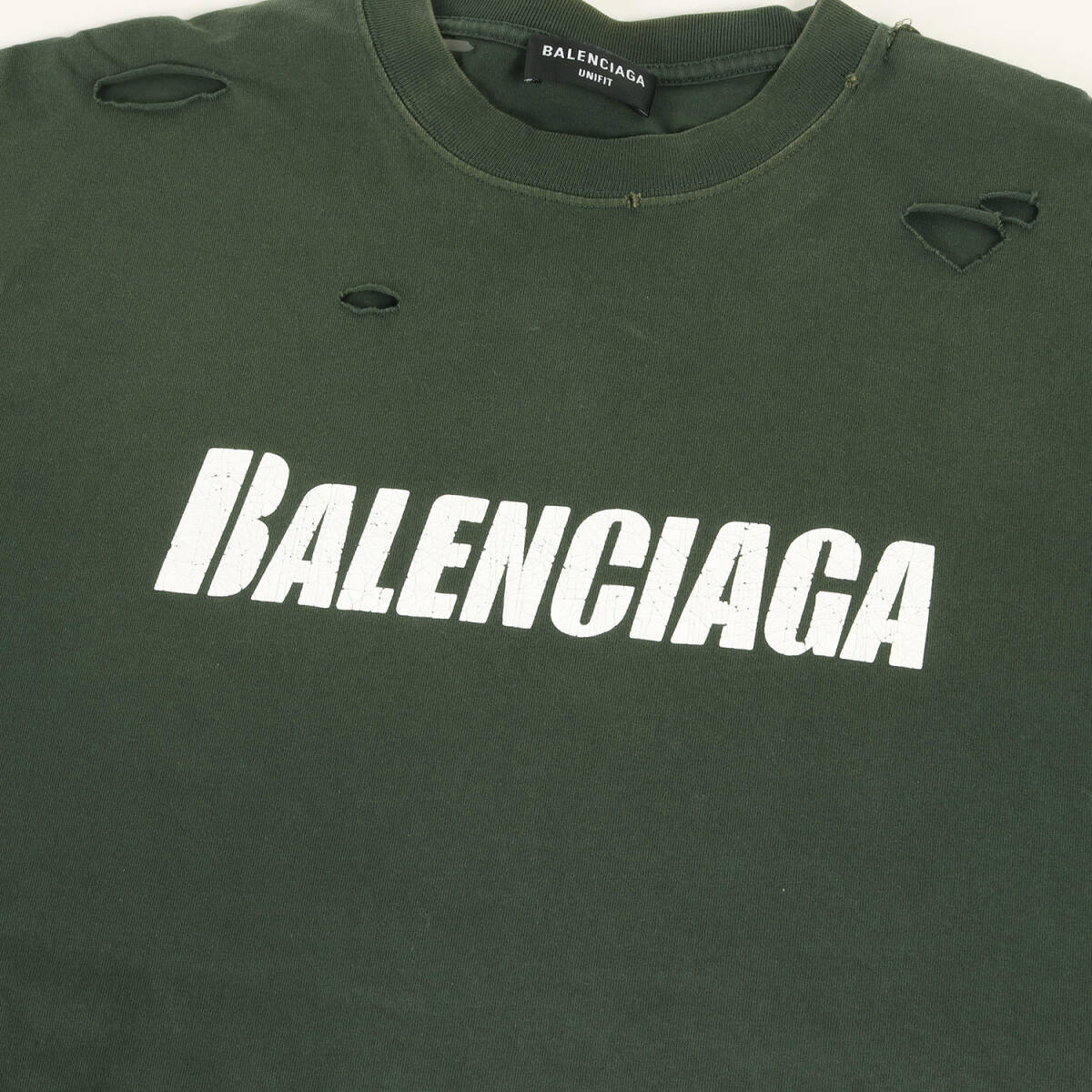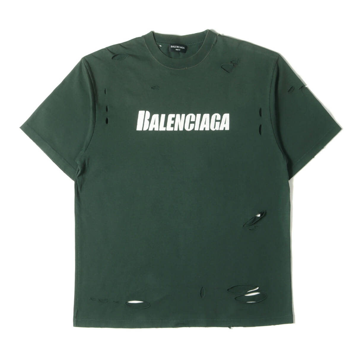BALENCIAGA バレンシアガ Tシャツ サイズ:XXS / フェード デストロイ加工 ロゴ Tシャツ (Caps Destroyed Flatground Tee) / グリーン 收藏