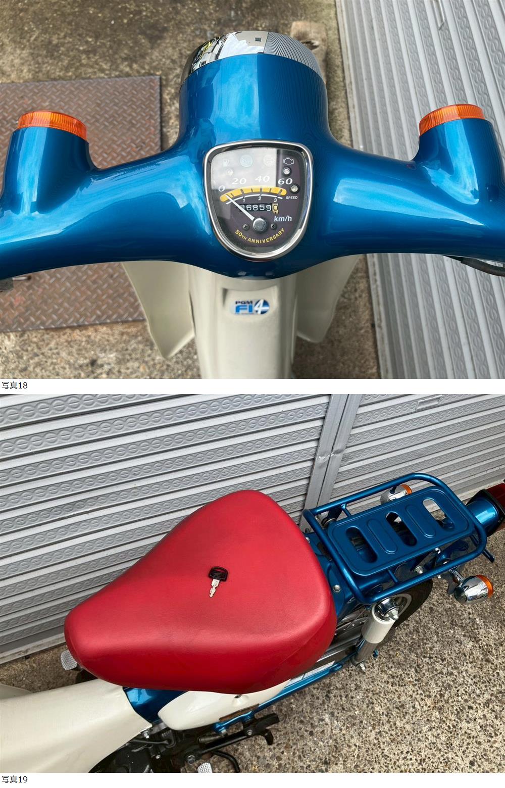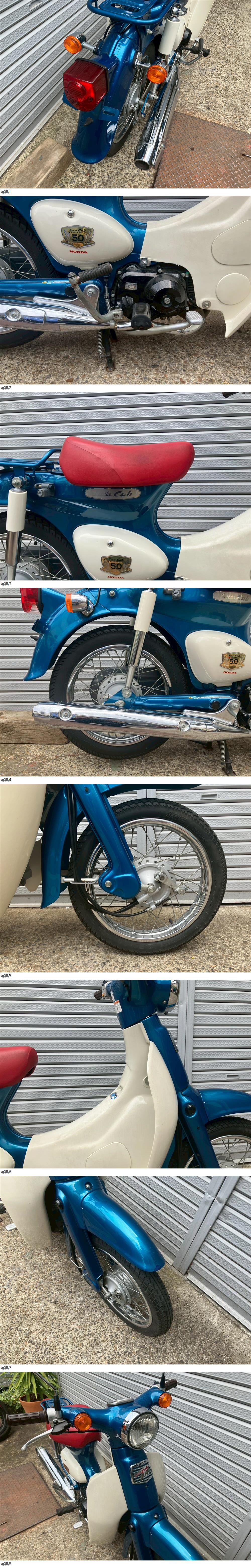 | 商品説明 | この度は当出品車両をご覧頂きまして誠に有難う御座います。 他にも複数台出品がございますので宜しければご覧ください! ご入札頂けた際には文末にありますお取引詳細にご同意頂けたものとさせて頂きます。 下記車両詳細・お取引詳細になりますので必ずご一読くださいませ! また、直接お越しいただいた方にその場で販売することもあるため予告なしに出品の取り消し等をする場合も御座います。 よって、落札前には一言コメント欄にてご一報頂けますと幸いです。予めご了承下さい。 〜〜車両詳細〜〜 メーカー:ホンダ 車種:リトルカブ 年式:2008年 色:青 鍵:純正キー1本 排気量:50cc 走行距離:6,858km 燃料供給装置:インジェクション フレームNo:AA01-4008XXX 自賠責:なし 自賠責の加入も可能です! R>・エンジン始動O K! 吹け上がり良好! 確認箇所は以下となります。 スピードメーター:作動OK! ヘッドライト:ハイロー点灯! ウィンカー:前後左右点灯! テール:尾灯・ブレーキ共に点灯! ナンバー灯:点灯! 赤いシートの差し色が特徴的な50周年モデルのリトルカブ入荷いたしました☆ ・外観 目立つ傷割れありませんが全体的に年式なりの使用感やヤレ感はございます。 状態は写真にてご確認ください。 ★別途部品交換受け付けます! ・タイヤ前後交換など!詳細は直接お問い合わせくださいませ! エンジンオイル・タイヤ交換など! 詳細は直接お問い合わせくださいませ! *上記ご利用の際は部品の在庫状況によりお引き渡しまでにお時間を頂戴する場合が御座います。 〜〜お取引詳細〜〜 ※ご注意ください※ 出品車両はあくまで現状販売となります。走行点検などは行っておりません。 良好・好印象などの表記に関しても車両の状態を確実に保証するものではなく 細かい程度の差なども含めあくまで当方の主観でありますこと重々ご承知置き下さい。 特別に気になる箇所など(外観に限ります)がある場合は直接ご相談ください。 ご指定いただきました箇所のお写真を添付をさせていただきます。 (あまりにも多い場合はご対応致しかねます。) 上記を踏まえまして現車の確認は大歓迎です。 細かい箇所など気になる方は是非とも現車確認を行ってください! (予約制となりますので直接お問い合わせください。) 一般の二輪販売店と同様の点検・整備は行っておりません。 車両に関する一切の保証等も御座いませんので自走でのお引き取りはお断り致します。 ある程度の知識があり落札後にご自身で整備の出来る方、或いは整備工場等にて分解整備を別途検討できる方、メンテナンスベースとしての使用などの落札を推奨しております。 明記してあること以外の確認はしておらず、また致しかねます。 目視できる消耗品以外のパーツに関しましても寿命のわからぬものなど御座います。 (中古品ですのでつい先程まで正常に作動していたにも関わらずお受け取りの際に状態の変化などある場合も十分御座います。例・電子機器、ワイヤー類など) 再三にはなりますが如何なる場合もお引き渡し後のキャンセル・クレームはお受け致しかねます。 現状販売というものを重々ご理解の上ノークレーム・ノーリターンでよろしくお願い致します。 原則キャンセルはお受け致しかねますが、止むを得ず落札者様都合でキャンセルされる場合には 落札金額の1割をキャンセル費用として頂戴させて頂きます。 上記取引内容に不安を感じられる方には二輪販売店等の整備・保証付き車両のご購入を強くお勧め致します。 ★直接引き取り・即引き取り大歓迎! 直接引き取りの場合、落札から1週間以内にお引き取り下さい。 それ以降日割りにて2,200円を別途頂戴させて頂きます。 *部品交換をご依頼の方は完成のご連絡から1週間以内となります。 ★配送OK! 主に配送業者に委託しております。ご自身で手配いただいても結構です。 レッドラインの金額を参考にしておりますのでお手数ですが費用に関しましては落札者様にて直接HPでご確認下さい。 発送元は埼玉県川口市となります。ご購入から配送までの目安は関東近郊で1〜2週間程度となるかと思います。(地域、期間により大幅に異なりますので納期が気になる方は直接レッドラインへお問い合わせ下さい。) 関東近郊の場合割増でお早めにお届けできる場合も御座いますので一度ご相談下さいませ!(対象外となる場合も御座います。) また、配送の場合もお取置き等の対応は致しかねますので落札後は速やかに配送依頼の手続きを行わせて頂きます。 ★車両のみの販売となりますので必要な場合のみ別途5,500円にて販売証明書の発行・発送を受け賜ります! ★新規アカウントの方、落札者様の評価内容によりましては、ご入札頂いても当方の判断で削除する場合がございます。予めご了承下さい。 ★落札後、24時間以内にお客様情報のご入力・落札代金のお支払いがいただけない方のお取引はキャンセルとさせていただきます。(お支払いに関しましては、どうしてもの場合大幅な期間でなければある程