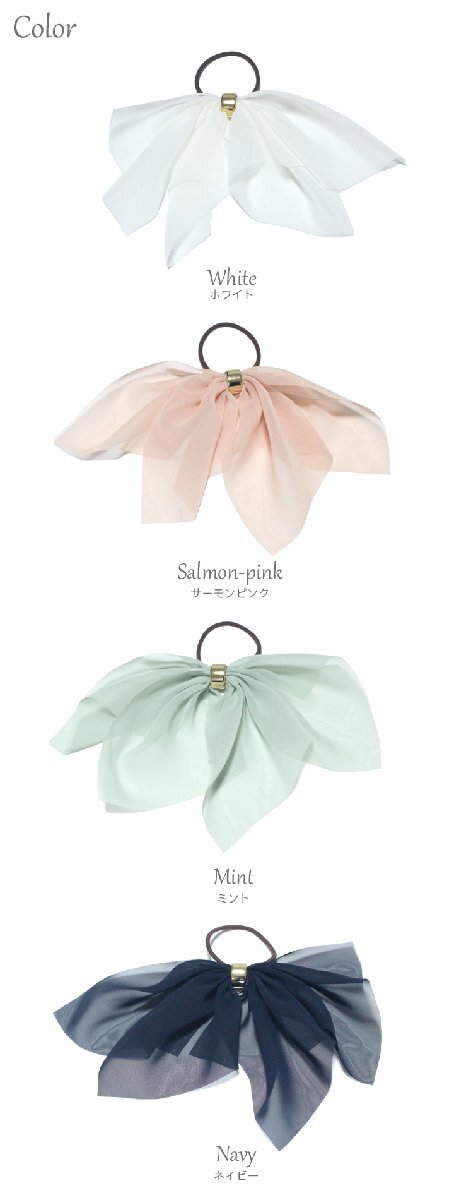【ゆうパケット送料250円】ヘアゴム/ひらひらダブルリボン 透け感 シフォン フェミニン g154☆ミント ヘアアクセサリー 收藏