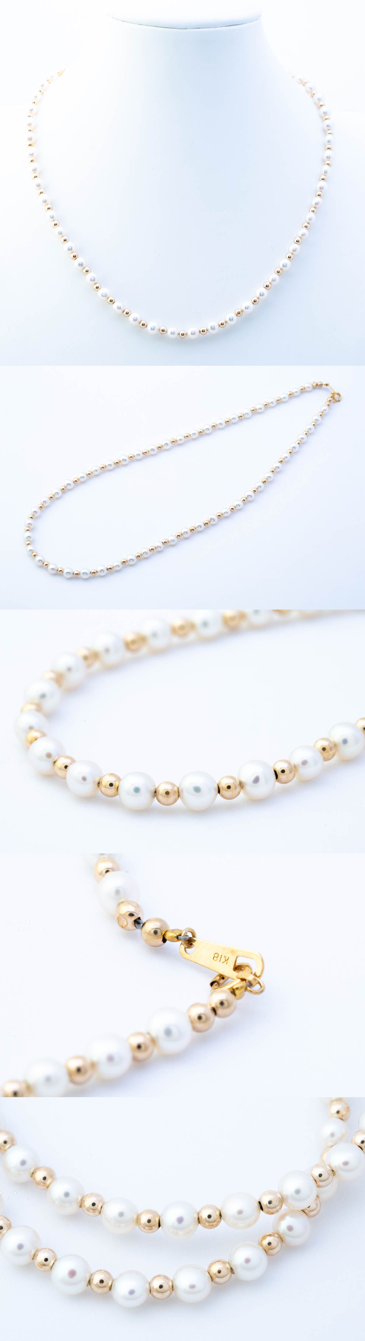 ベビーパール 真珠 ネックレス 4.6mm-5.0mm K18 刻印 重量約8.8g ジュエリー アクセサリー #38371 收藏
