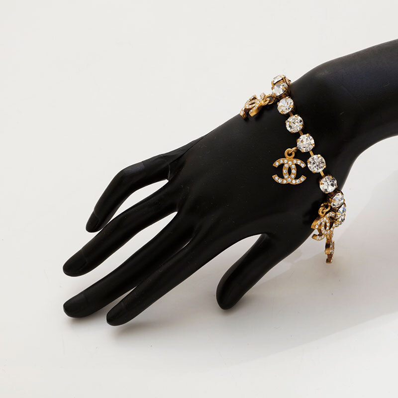 シャネル CHANEL ブレスレット ラインストーン ココマーク ゴールド 收藏
